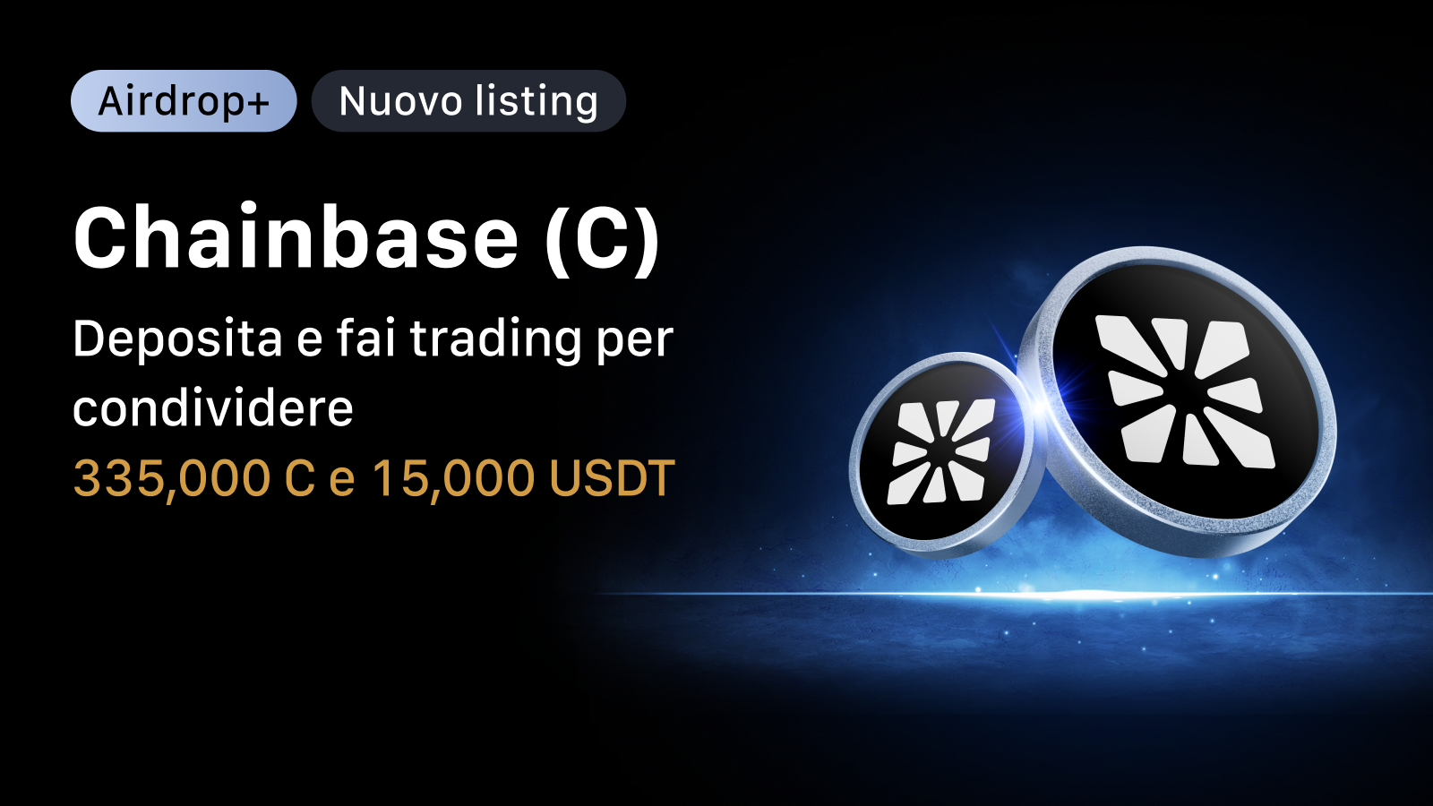 Unisciti a noi per festeggiare il listing di Chainbase (C) su MEXC con un evento speciale aperto sia agli utenti nuovi che a quelli esistenti. Non perdere l'occasione di condividere l'incredibile montepremi e di godere delle commissioni tra le più basse sul mercato quando fai trading con MEXC!