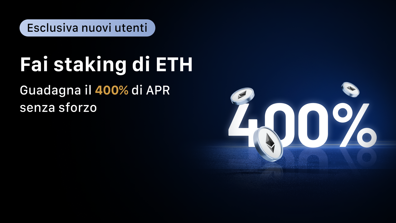 Il Gala di staking di ETH è ora live, aperto esclusivamente ai nuovi utenti e disponibile a tempo limitato. Fai staking di ETH oggi stesso per guadagnare uno straordinario APR del 400%. Non perdere questa rara opportunità!