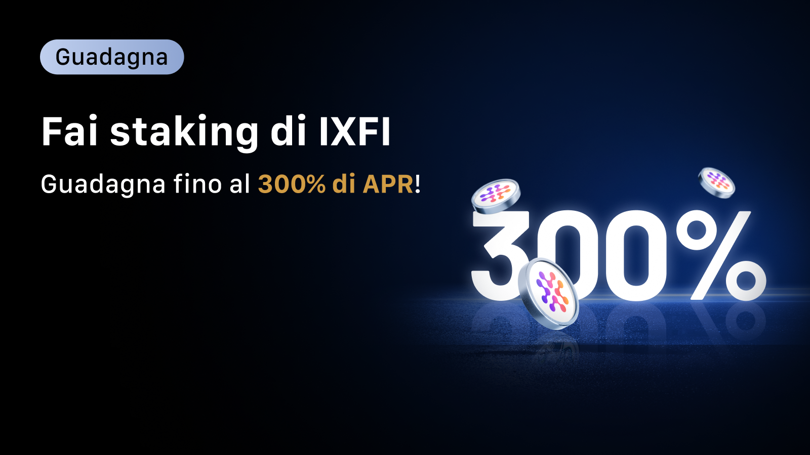È giunto il momento di far fruttare al meglio le tue criptovalute. MEXC è lieta di presentare l'evento Fai staking per guadagnare IXFI, un'opportunità limitata nel tempo per guadagnare fino al 300% di APR semplicemente facendo staking di IXFI.
