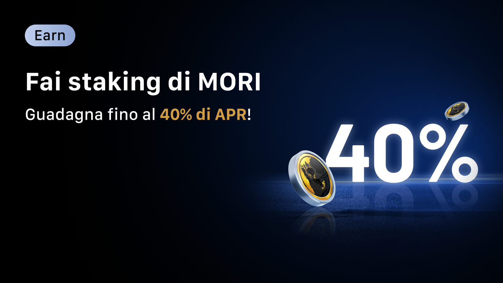 È ora di far lavorare di più le tue criptovalute per te! MEXC è orgogliosa di presentare l'evento Fai staking per guadagnare di MORI: la tua opportunità a tempo limitato di guadagnare fino al 40% di APR semplicemente facendo staking di MORI.