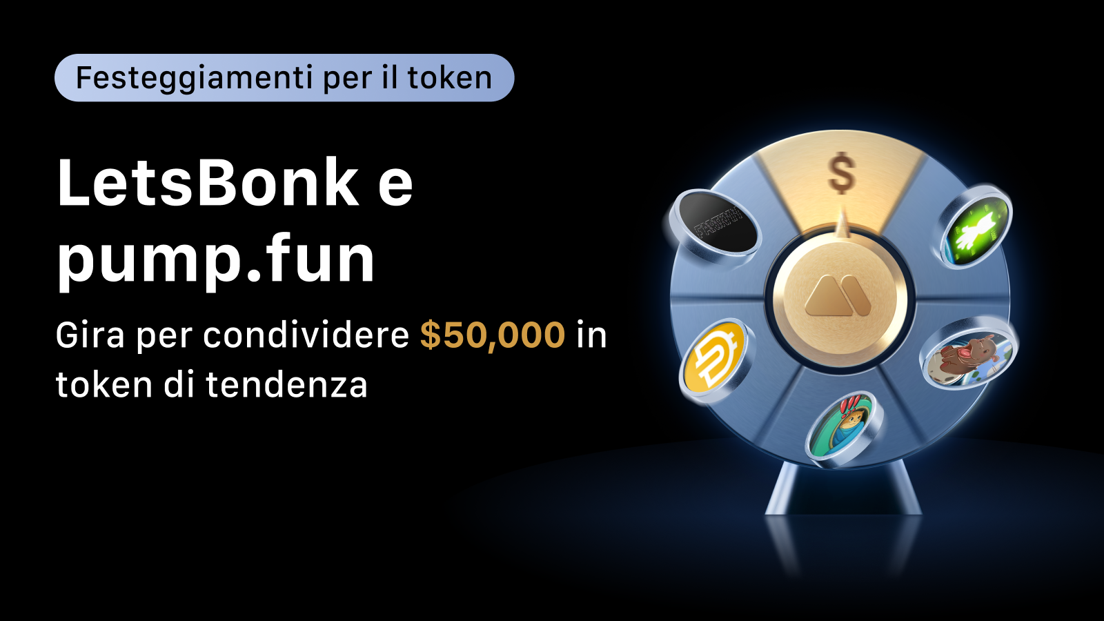 Partecipa alla Ruota fortunata di LetsBonk e pump.fun per avere la possibilità di condividere premi per $50.000 in token di tendenza. Chi trionferà nella guerra dei lanci di memecoin? Mentre queste piattaforme si contendono il primato, unisciti a noi per un giro di trading dei meme più di tendenza di entrambe le piattaforme e scopri chi offre i guadagni maggiori! Affrettati: quantità disponibile limitata!