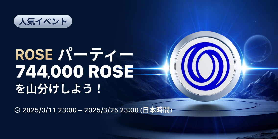 MEXCの最新ROSEイベント「ROSE パーティー」にぜひご参加ください。すべてのユーザー様が参加可能です。744,000 ROSEの賞金プールを山分けするチャンスです!