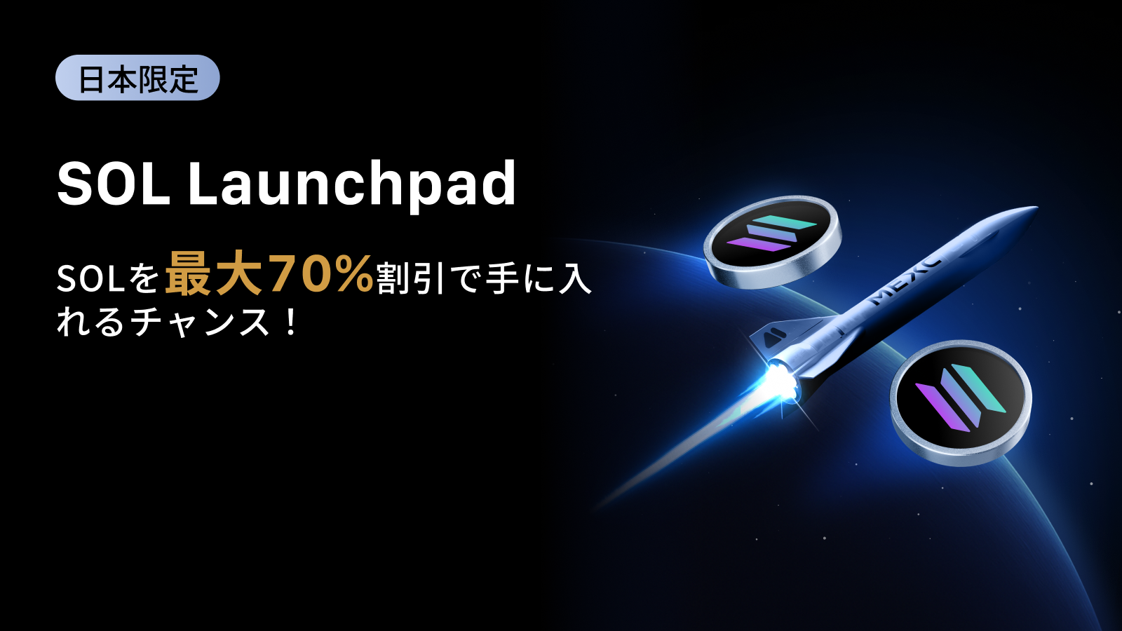 MEXCのSOL Launchpadに参加登録して、$50,000 相当のSOLを獲得するチャンスをつかみましょう! ※本イベントは日本の新規ユーザーおよび既存ユーザーが対象です。