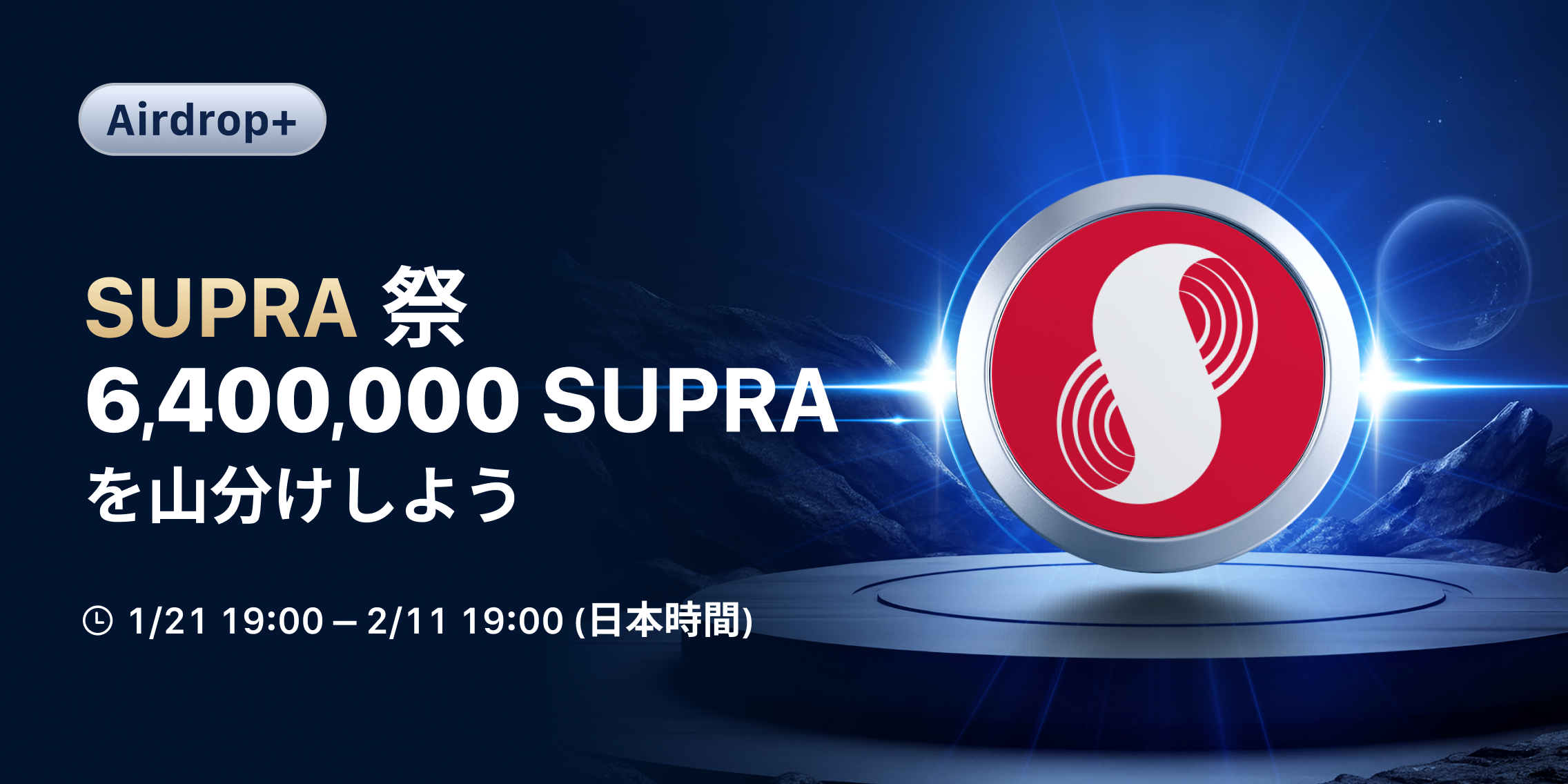 MEXCはSUPRA祭を開催します!6,400,000 SUPRAを獲得できるチャンスが得られます。新規ユーザー様でも、すでにMEXCファミリーの一員の方も、誰でも参加可能です!