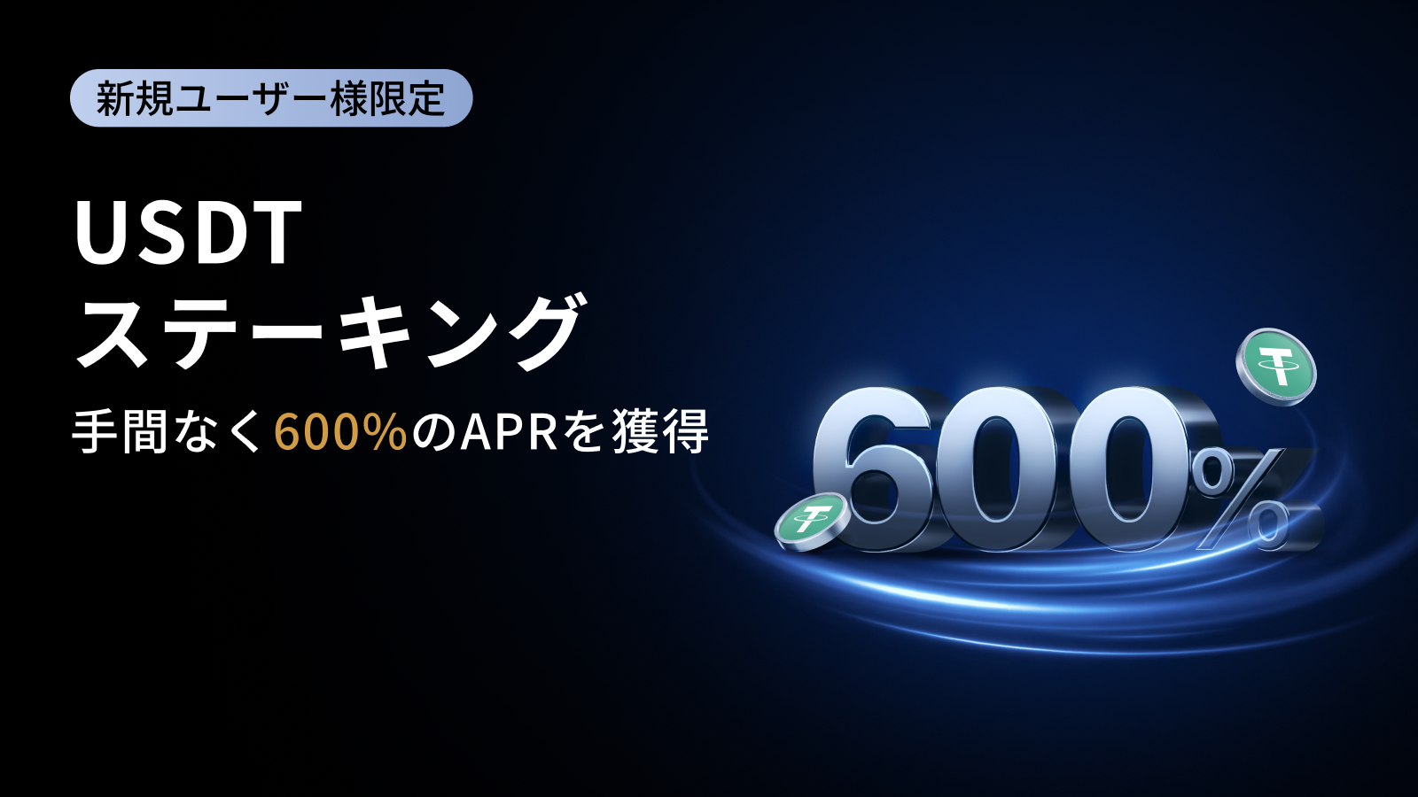 手間をかけずに資産を増やしたい方に絶好のチャンスです。MEXCで「USDT ステーキングして稼ぐ」イベントが、新規ユーザー様限定で開催中です!USDTをステーキングするだけで、600%のAPRを獲得できる絶好のチャンスです。