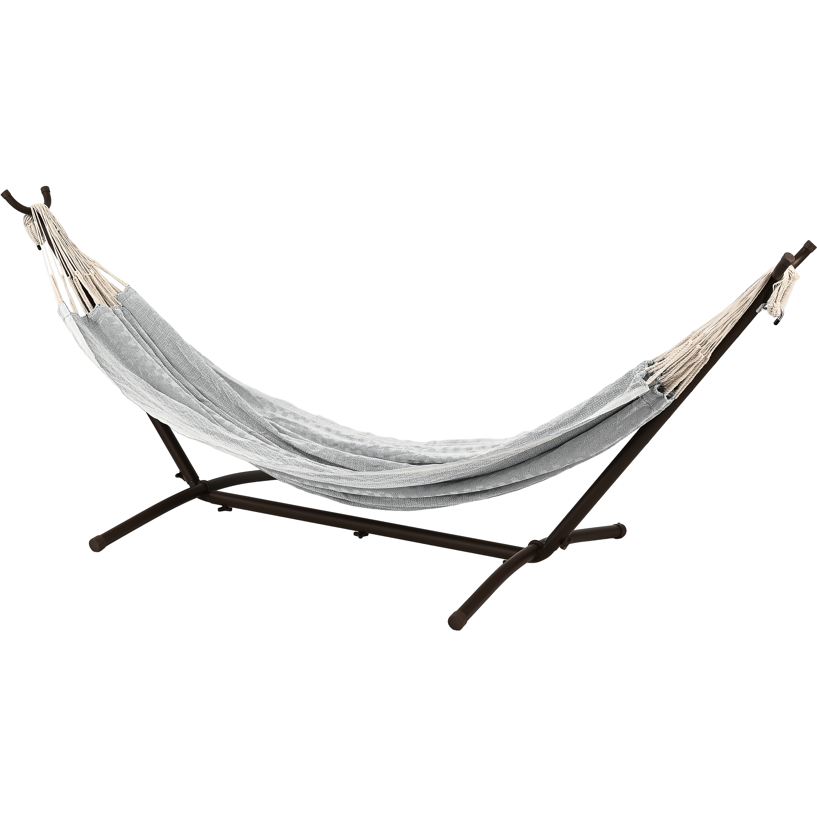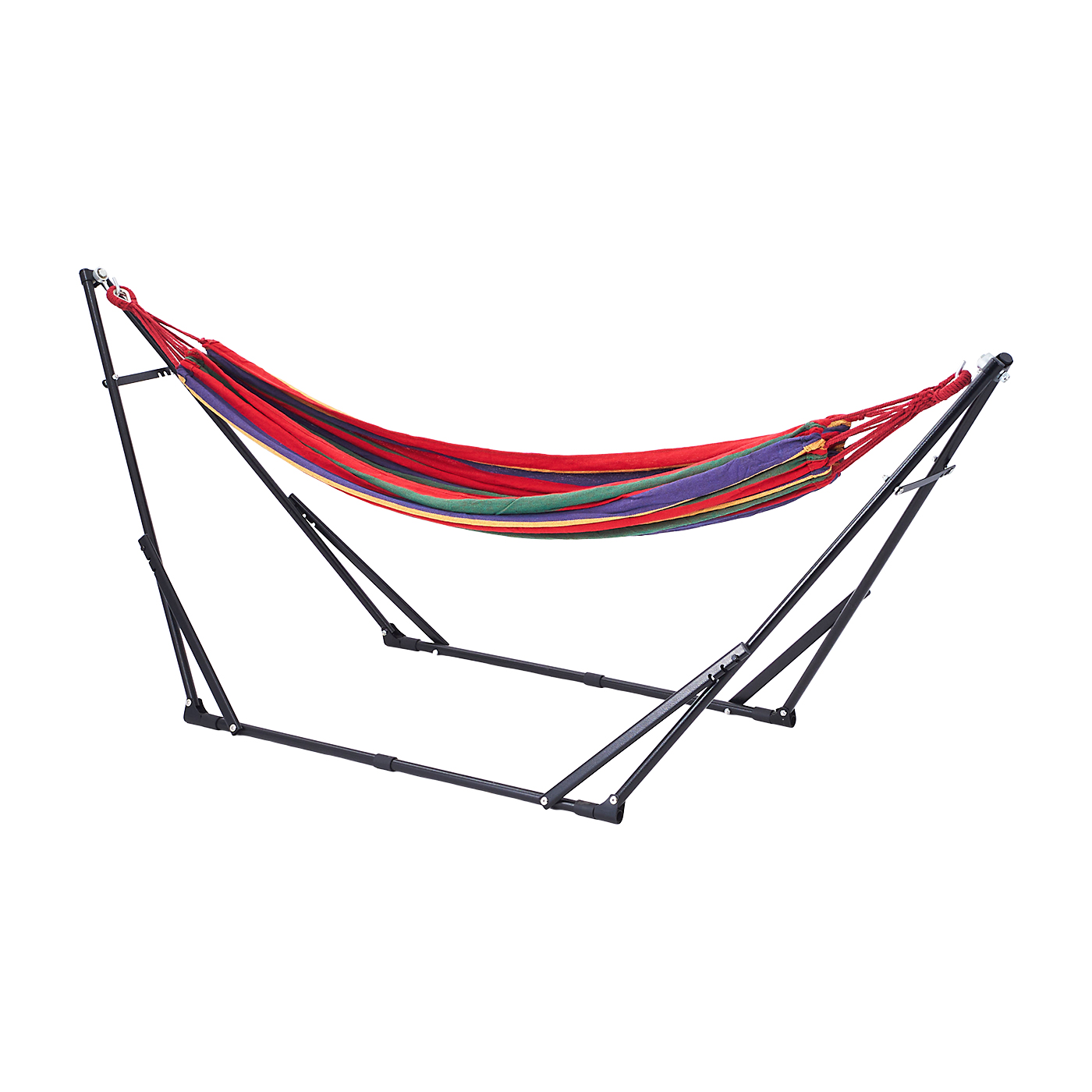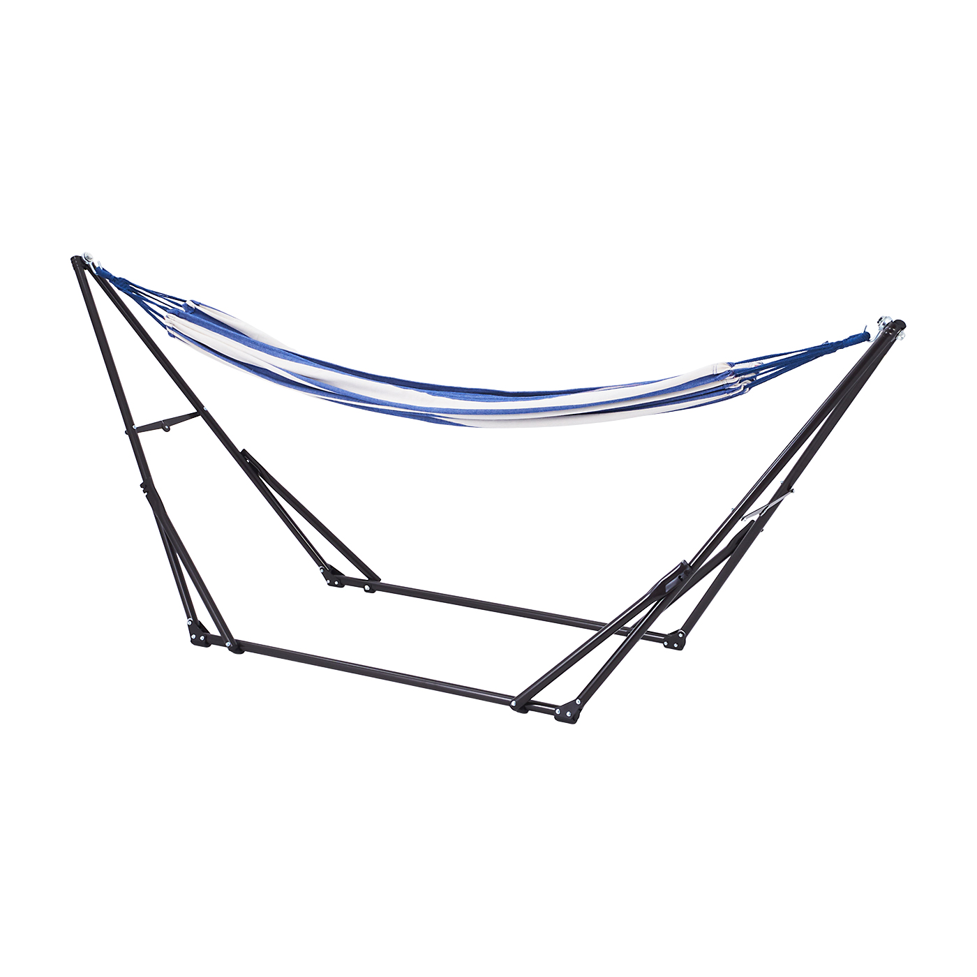 数多くのハンモックを販売するハンモック専門店、LifeFairの「自立式ハンモック」。ストライプの模様が特徴的な商品です。また、2人でも寝られると謳っており、大きなサイズが魅力です。展開時の長さ×幅は270×112cmと、非常に大きく体がすっぽりとおさまるサイズでした。また、柔らかい生地で肌触りも上々の評価。適度な張り心地でフィット感がよく、寝返りも打ちやすかった印象です。加えて、寝返りを打ってもハンモックがぐらぐらしなかったので、安定性の高さも高評価につながった要因の1つでしょう。専用のチェアはないものの、柔らかな生地はフィット感がよく全体的に包み込まれるような感覚があったとの声が多く挙がりました。また、布の横幅が広く作業をしやすかったことや、深く座れたこと、安定感があり土台やフレームが動かなかったところも、高評価につながった要因といえます。とにかく、寝心地座り心地がよく、チェアに付け替える必要もない自立式ハンモック。ハンモックでダラダラゆらゆらしたい人は、これを買っておけと自信を持っておすすめできる、ベストバイです。