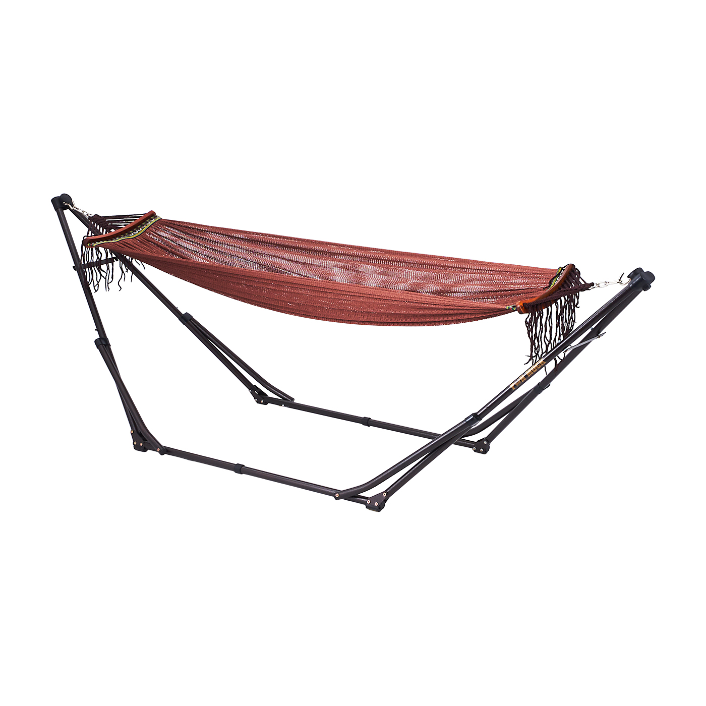 中南米発のハンモックブランド、Susabiの「コロンビアハンモック+スタンドセット」。日本の暮らしに溶け込むカラーを謳っており、10色のカラーバリエーションがあるので、インテリアの色とマッチさせやすいところも魅力です。展開時の長さ×幅は260×98cmと、比較的大きめなサイズ。寝返りを打てる横幅と、頭から足先まで全身を包み込む長さが魅力で、ハンモックの中で動いても余裕があるサイズとの声も挙がりました。また、寝返りを打ってもグラグラしなかったところも高評価につながった要因といえます。しかし、生地の張りが緩めで腰が沈み込みやすい点や、タオルのような生地でざらつきがある点には注意が必要です。生地の張りが緩めで一点に体重がかかると、腰が沈み込んでしまうところは懸念。専用のチェアは付属していないものの、体のラインに沿うようなフィット感と、大きめのチェアは好印象でした。しかし、ゆらゆらと揺れてもフレームがグラグラせず、安定性も高いといえます。