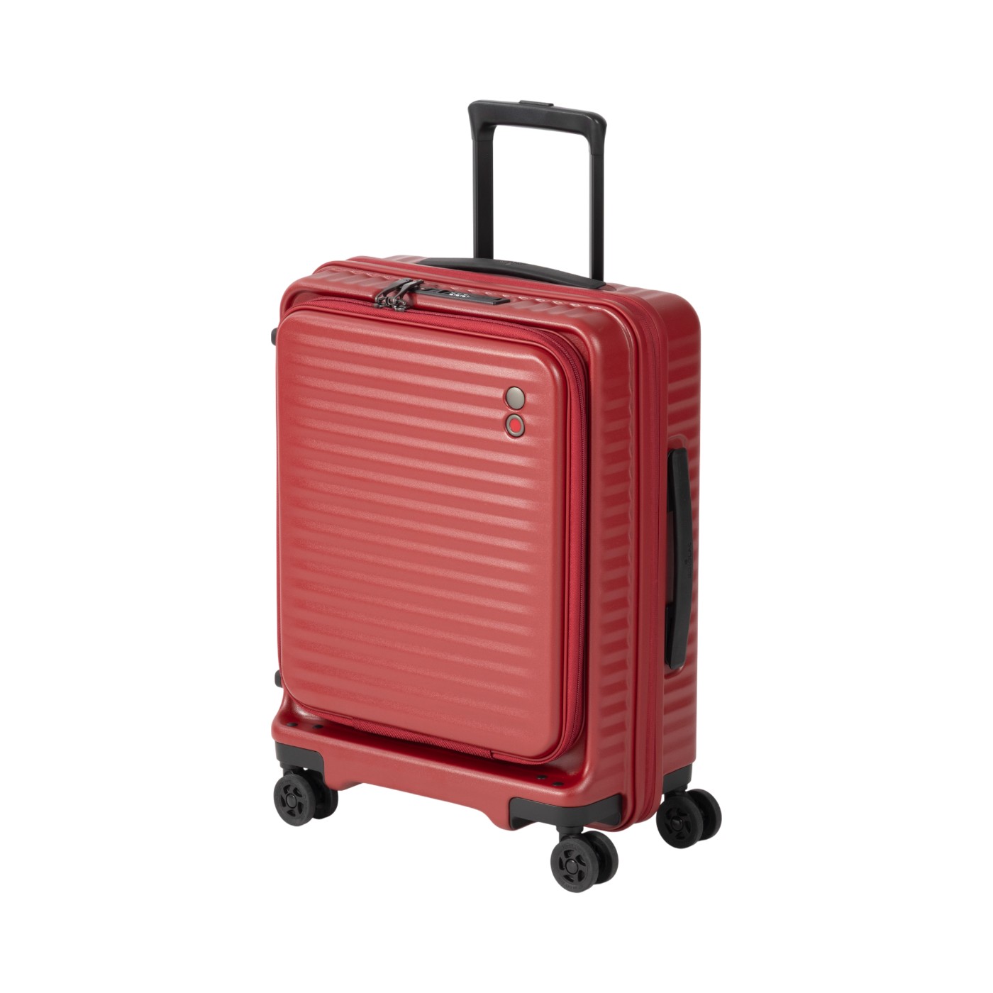 ECHOLACの「CELESTRA」は、ドイツのバイエルコベストロ社製ポリカーボネートを使用した、耐傷・耐衝撃性を強みと謳うハードタイプのスーツケースです。重量3.4kgで機内持ち込みに対応し、容量は38Lから44Lへ拡張可能。TSロックやUSBポートなど、機能性の高さも伺えます。操作性の検証では、キャスターの滑らかさが際立ちました。モニターからは「アスファルトでも砂利道でも動かしたい方向にスムーズに動かすことができた」という声があがっています。ただし、キャリーバーの調整時にはやや引っかかりを感じることがあり、力が必要な点には注意が必要です。走行音は平均65.04dBと、深夜の屋外でも気にならないレベル。耐水性の検証では、フロントオープンにも関わらず内部への浸水が一切見られなかったため、雨天時でも荷物をしっかり守れるでしょう。耐久面では、ポリカーボネート素材と本体リブで衝撃への耐性が強く、加水分解にも対応していました。移動時の快適性、静音、耐水性を重視する方に適しています。長時間の移動や悪天候下でも、高い信頼性をもって使い続けられる耐久性を備えた一台です。