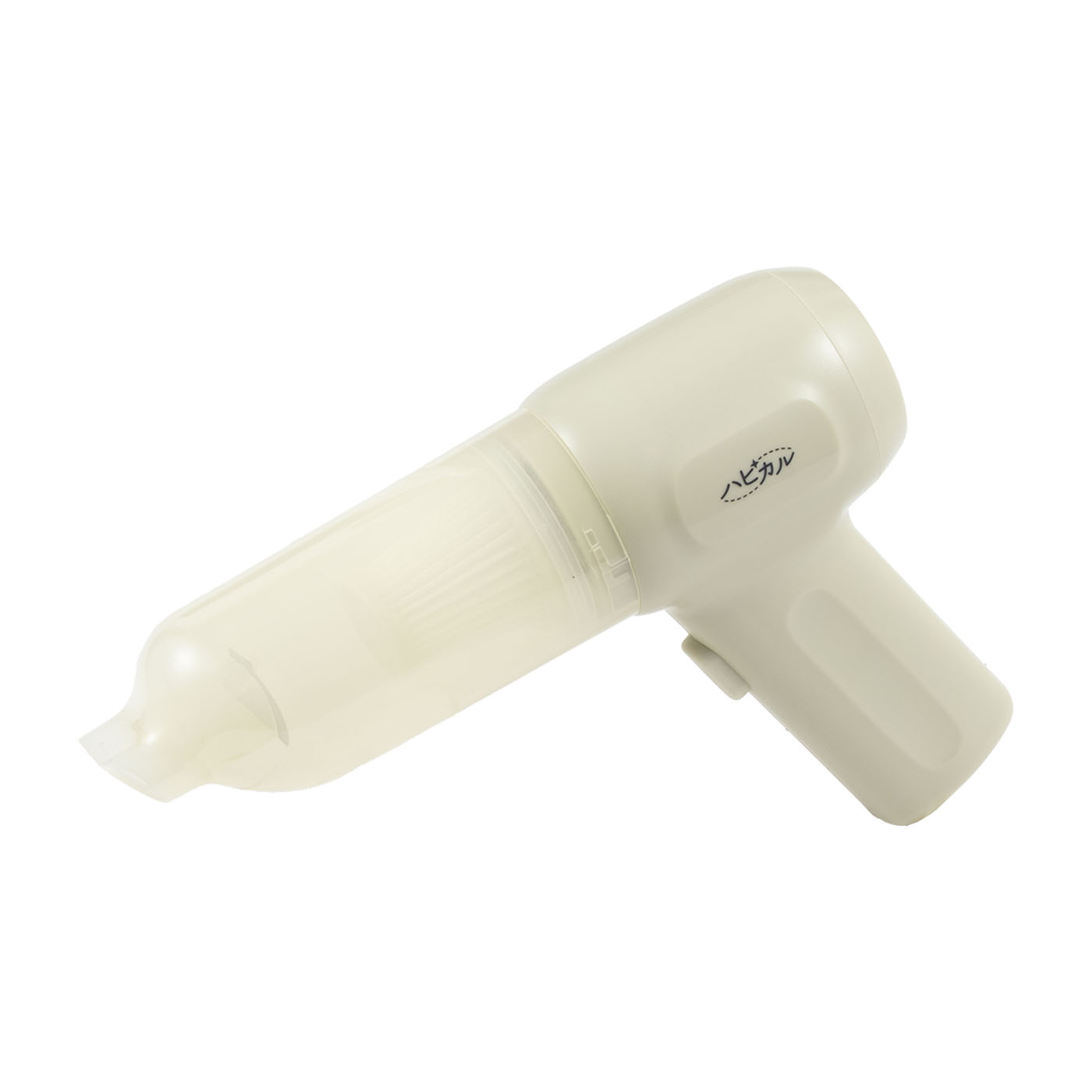 ヒーローグリーンの「ハンディクリーナー HV-22GY」は、アタッチメントが豊富で静かなものがほしい人におすすめ。延長パイプ・隙間ノズル・ブラシノズルが付属しており、家に掃除機がなくスティッククリーナー代わりに使いたい人から高い位置の掃除を終えたい人まで、幅広く使いやすいでしょう。稼動音は平均58.7dBとトップクラスに静かで、本体重量は580gと軽量。クッションカバーやカーペットに張りつきやすく髪の毛を取りこぼしたものの、ほとんどの場合は3往復以内で掃除を終えられます。シーンや時間帯を選ばず、気が向いたときにサッと掃除できる理由がそろっているといえるでしょう。フィルター・ダストカップ・各ノズル・延長パイプは水洗い可能でお手入れは十分しやすいものの、お手入れ用のブラシはなし。集じん容積も0.1Lと頻繁なゴミ捨てが必要そうです。ゴミ捨てにも2工程必要で、手軽さにはやや欠けるでしょう。連続稼動時間は通常モードで約20分、強モードで約15分と特別長くはありません。とはいえ延長ノズルはほかのハンディクリーナーにはなかなか付属しておらず、家中を掃除しやすい工夫は多い1台でした。
