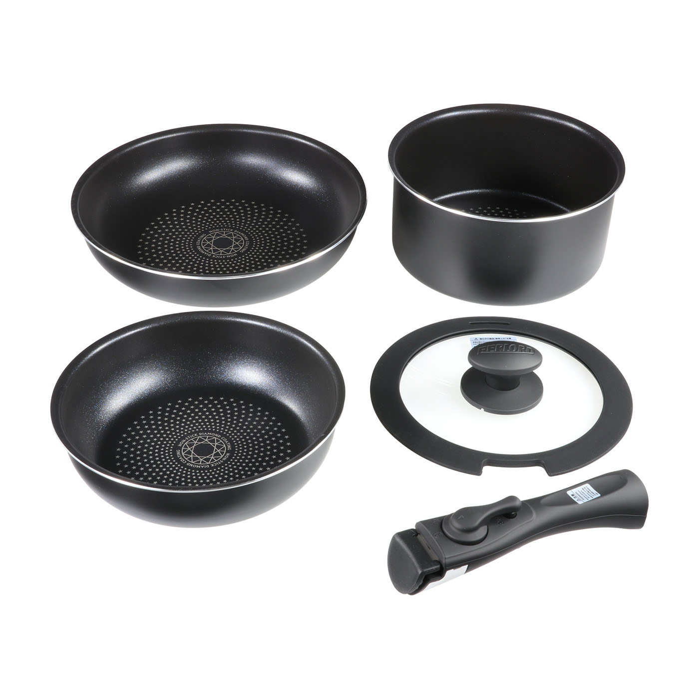 FERLORDの「フライパンセット」は、軽量で振りやすいフライパンセットを求める人におすすめです。セットに含まれる大きいフライパンは722gとトップクラスの軽さであるため、食材を入れた状態でも難なく振って調理ができます。フライパンのくっつきにくさもメリットです。使い始めはもちろんのこと、2年分の摩耗をしたあとでも焦げつきにくく、薄焼き卵もスルッと剥がれました。長く同じものを使いたい人にぴったりです。取っ手の着脱はレバータイプ。2段階レバーを回すことで取りつけられ、レバーを1段階回しレバー下にあるボタンを押すことで外せます。しかし、レバーもボタンも固めで、慣れるまではやや負担に感じる可能性があります。付属のパットをフライパンや鍋を重ねる際に挟むことで、セット同士の擦れによる傷つきを防げることは強み。くっつきにくさも持続しやすく、軽量で扱いやすいフライパンセットを求める人の候補になります。