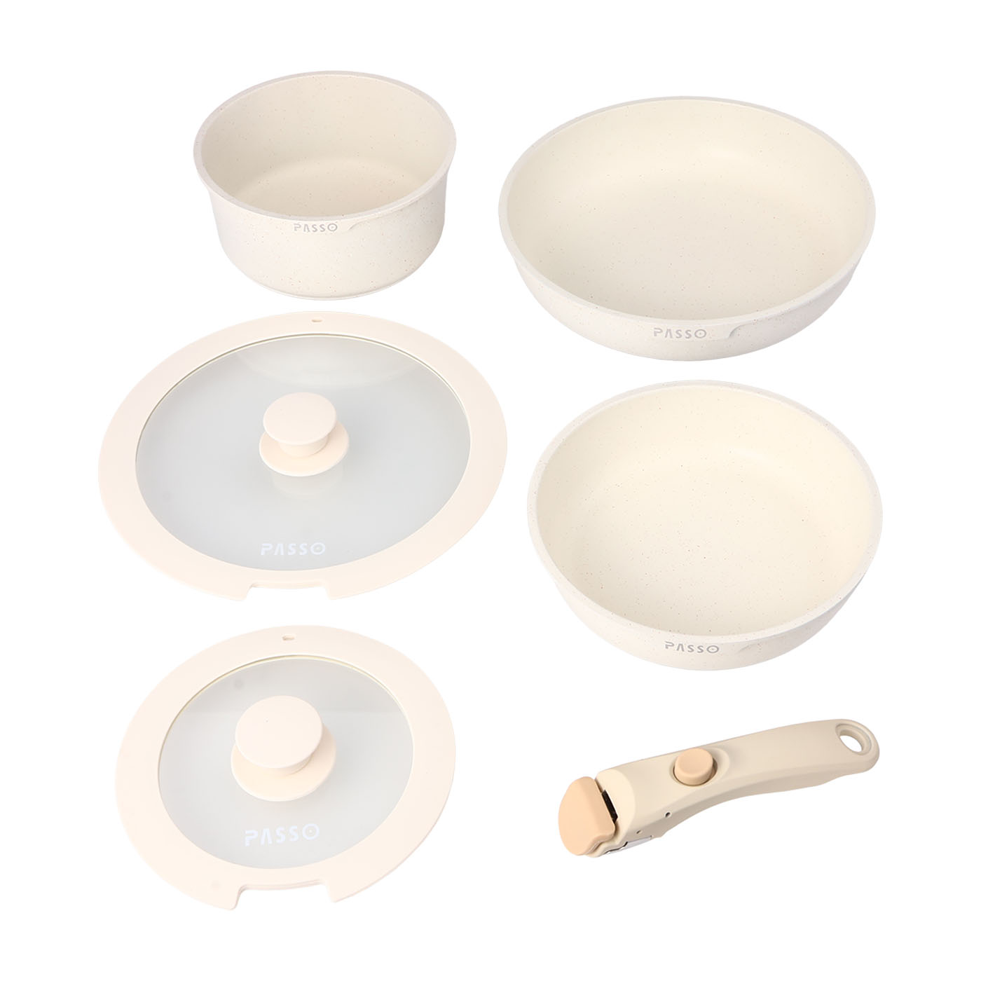ベージュで統一されたかわいいビジュアル。取っ手の着脱が簡単
