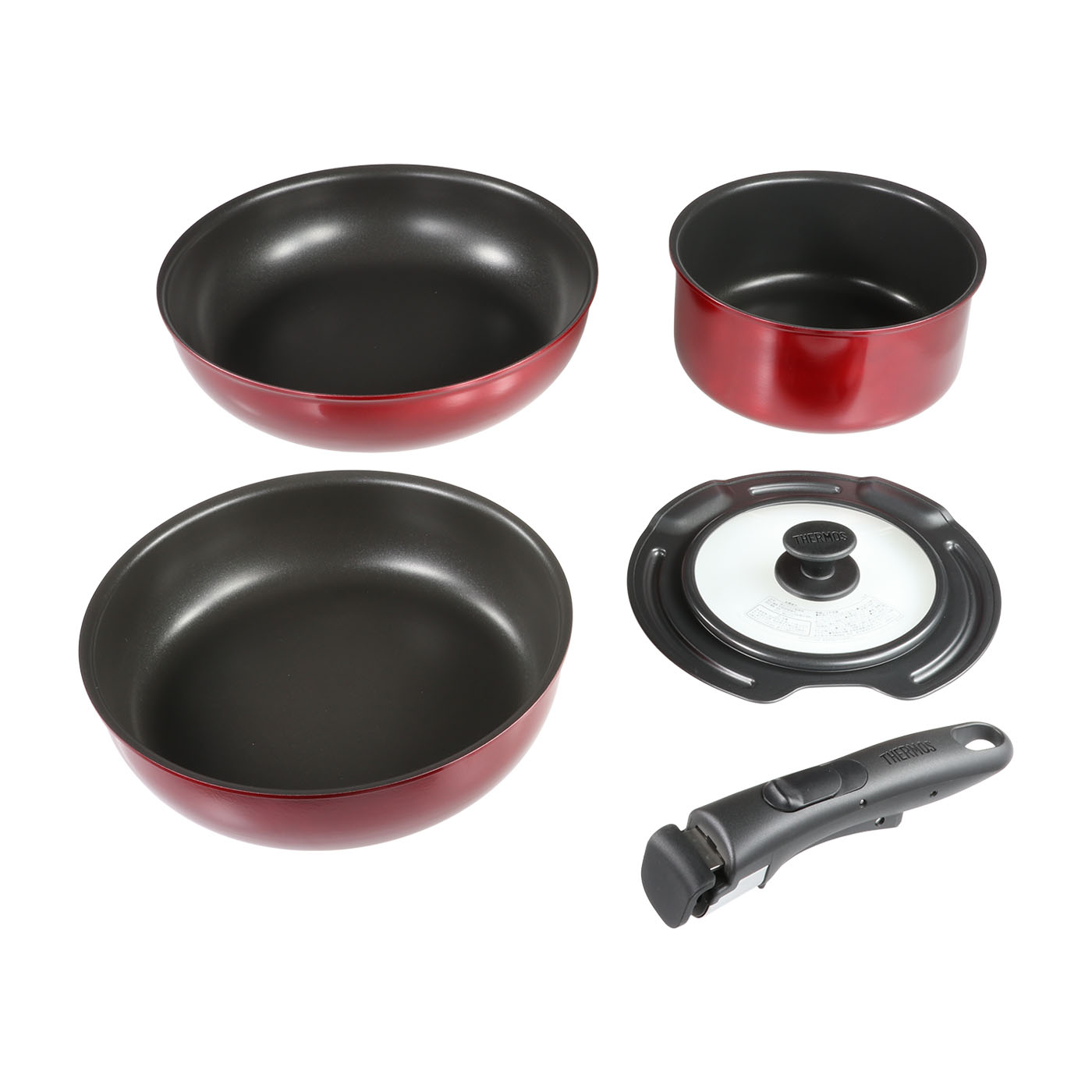 サーモスの「THERMOS 取っ手のとれるフライパン5点セット KSD-5A」は、食材がくっつきにくく調理も手入れもしやすいフライパンセットがほしい人におすすめです。新品時はもちろん摩耗後も卵がくっつかず、軽い力で動くほど。焦げつきにくいので、洗い物の手間も省けるでしょう。大きいフライパンの重量が953gと重いことは惜しい点。食材を入れていない状態でも、片手で持つのはやや辛いほどです。力に自信がない人や振りながら調理したい人には不向きでしょう。取っ手の着脱はワンタッチで可能。取りつけ時は底面にあるレバーを握り、外すときは上のボタンを手前にスライドさせながら下方向に押します。簡単なので、複数のフライパンや鍋で同時に調理するときにも便利でしょう。セットのフライパンは深めの設計なので食材がこぼれにくいうえ、汁気のある調理にも使いやすい印象。くっつきにくさ・深型設計・ワンタッチで着脱できる取っ手など、日々の調理を快適にする工夫が満載のフライパンセットです。調理と手入れを楽にしたい人は候補に入れましょう。