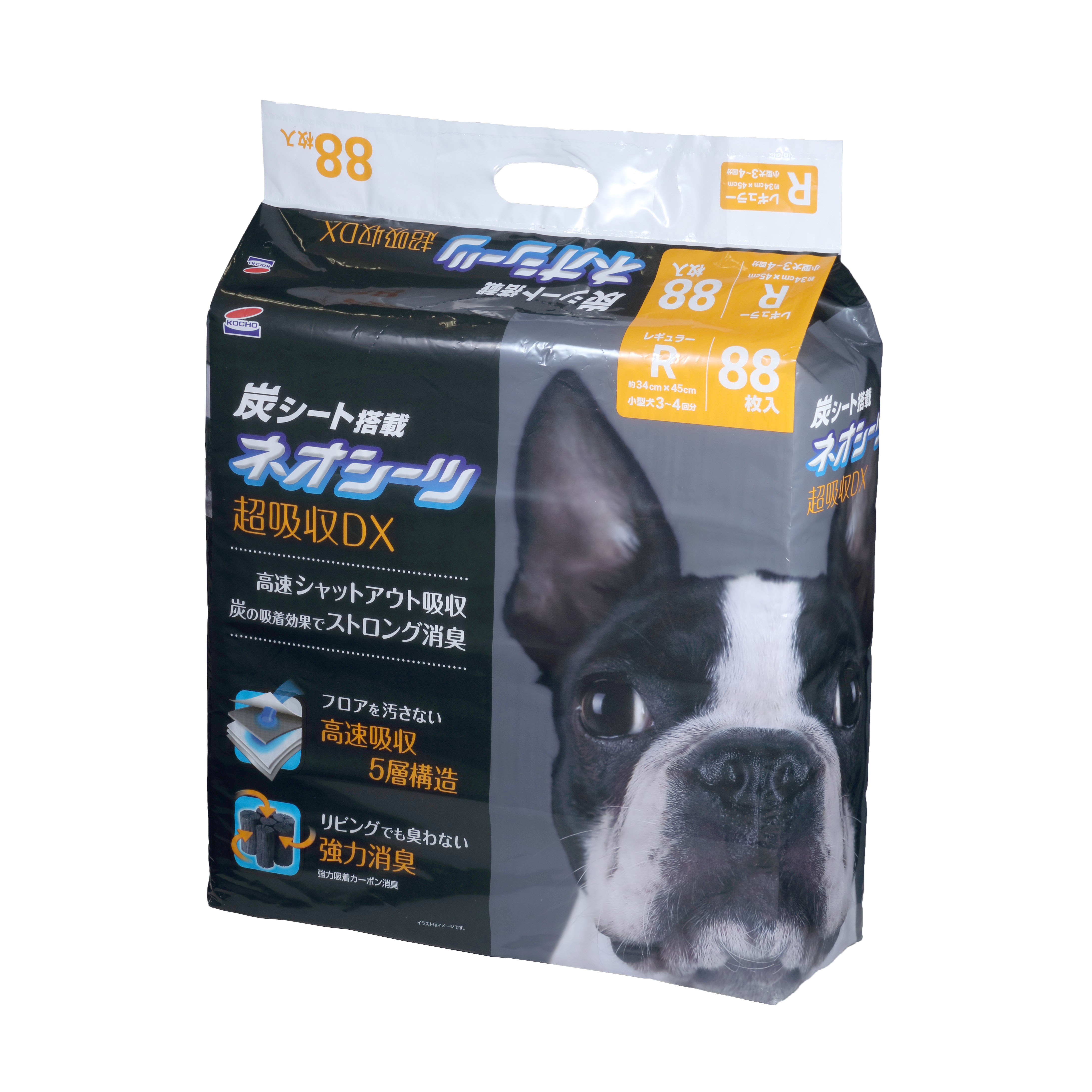 「ネオシーツ+カーボンDX」は、ペットのお手入れ用品の製造・販売を行うコーチョーの商品。優れたスポット吸収力で、おしっこの広がりを抑えられると謳っています。スポット吸収力は今回検証したほかの商品のなかでも比較的優秀で、1回分のおしっこの広がりをシーツの1/3以内にとどめました。シーツ1枚で3回分のおしっこを余裕を持って吸収できるでしょう。濡らした直後は湿り気を感じたものの、3分後には乾ききったので、速乾力も優れているといえます。吸収力の検証では、水分の逆戻りは見られず。踏まれたり乗られたりしても、おしっこが足につくことは考えにくいでしょう。消臭力の検証では完全消臭ではないものの、弱いおしっこ臭程度に抑えました。90分後・8時間後には少し消臭効果が弱まりましたが、部屋全体に広がるほどのものありませんでした。シーツの耐久力の検証では、使用後を再現したシーツをひっかいても傷がつくのみで破れませんでした。表面は不織布でカバーされているため、ある程度のひっかきには耐えられるといえます。しかし未使用の状態のシーツの耐久性は十分とはいえないため、シーツの取り扱いには気をつけましょう。