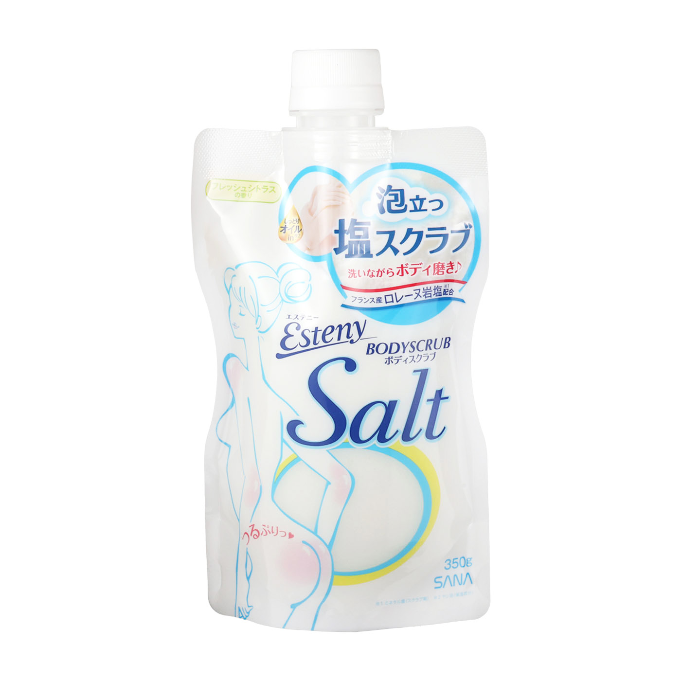 常盤薬品工業のSANA エステニー 「ソルティスクラブ」は、しっとり感とツルツル感を両方重視したい人におすすめのボディスクラブ。クリーミーなテクスチャで肌に密着して擦りやすく、古い角質を落とせるので、肘のツルツル感や腕のすべすべ感は得やすいといえます。実際に使用したモニタ―からも「洗い上がりの肌触りがなめらかに感じた」「肌触りがよくツルツル感が得られた」といったコメントが挙がりました。黒ずみが気になるので古い角質をどうにかしたい、という人におすすめです。また、フレッシュシトラスの香りはモニターからの評価もよく、おおむねよい結果に。爽やかなレモンのような香りで、リラックスタイムにぴったりでしょう。さらに、粒は大きめですが、なめらかなテクスチャで肌当たりはやさしめ。加えて、肌のしっとり感の検証も高評価でした。ほかのチューブタイプとは異なり、キャップが上についているパウチのような容器が特徴。出し口が大きいので、1回に必要な量をすぐに取り出せますが、自立しないので持ちにくい点や収納しにくい点でマイナス評価となりました。なめらかなテクスチャで擦りやすく、しっとりツルツルな肌を目指せるボディスクラブです。