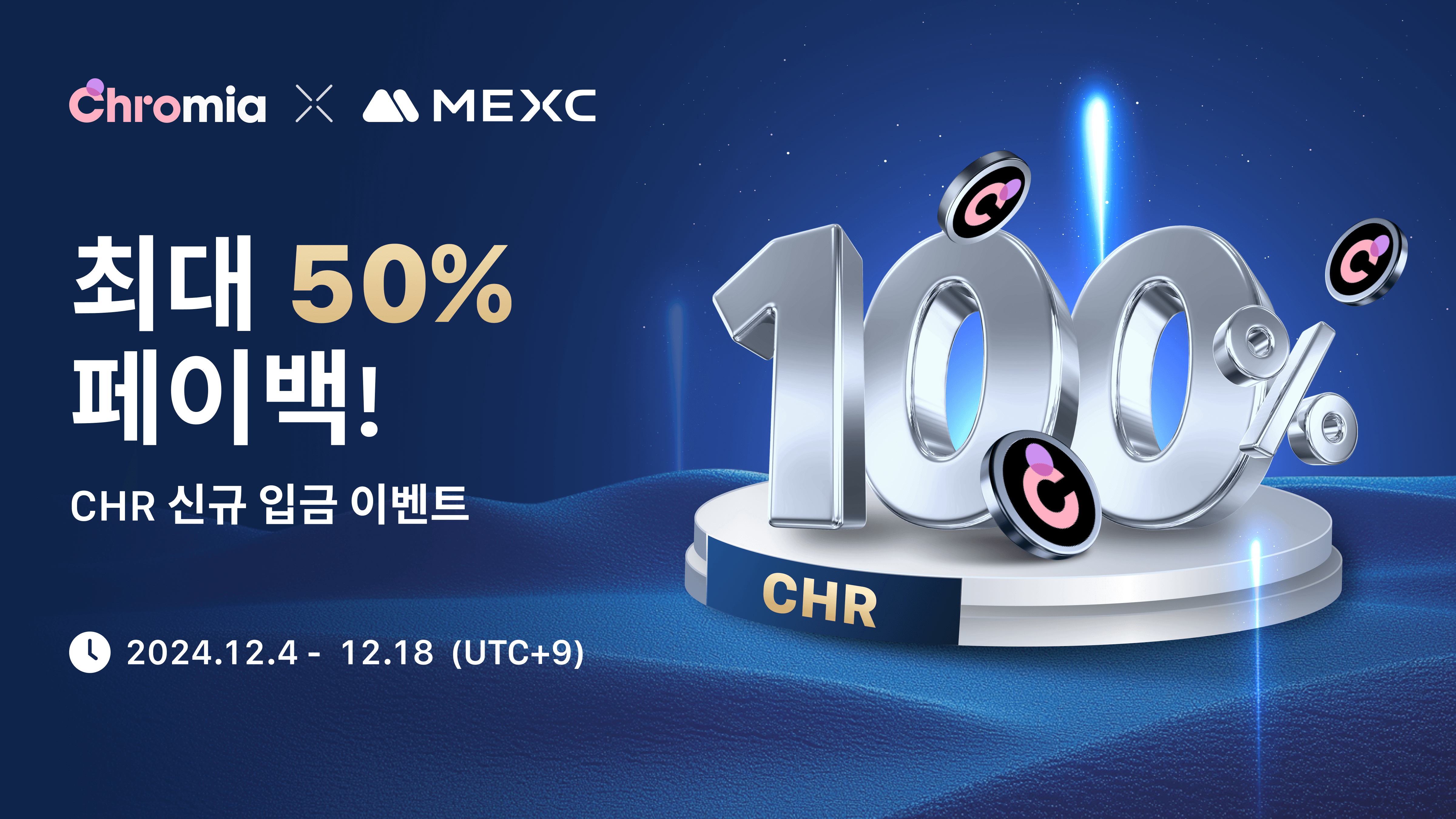 $CHR 상장 기념 MEXC 신규 사용자 대상으로 한정 이벤트를 진행하고 있습니다.