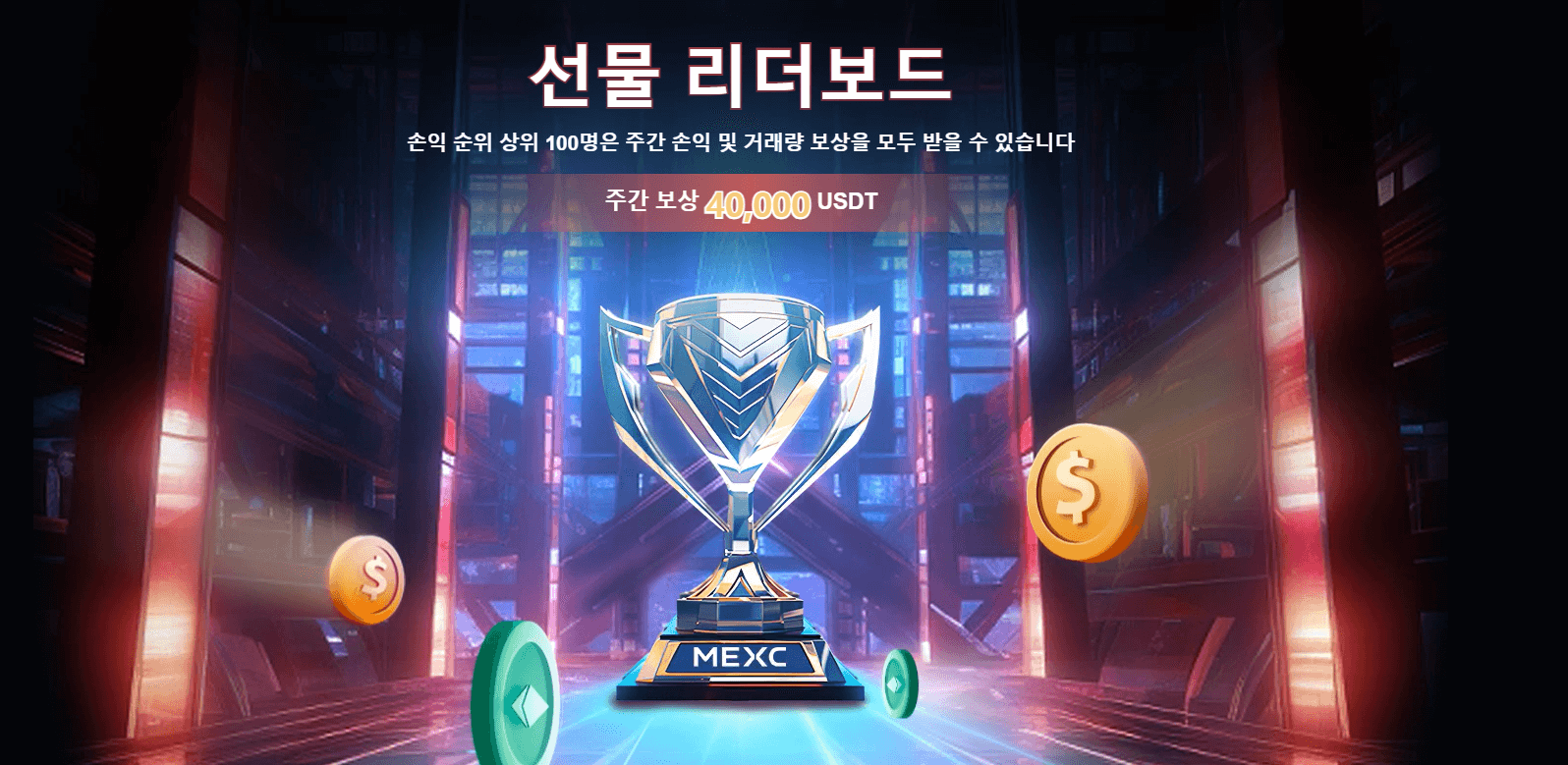 웹사이트 포털: MEXC 공식 웹사이트(https://www.mexc.com/ko-KR)를 방문하여 탐색 모음에서 [선물거래]를 클릭한 다음 [선물 리더보드]를 선택합니다.