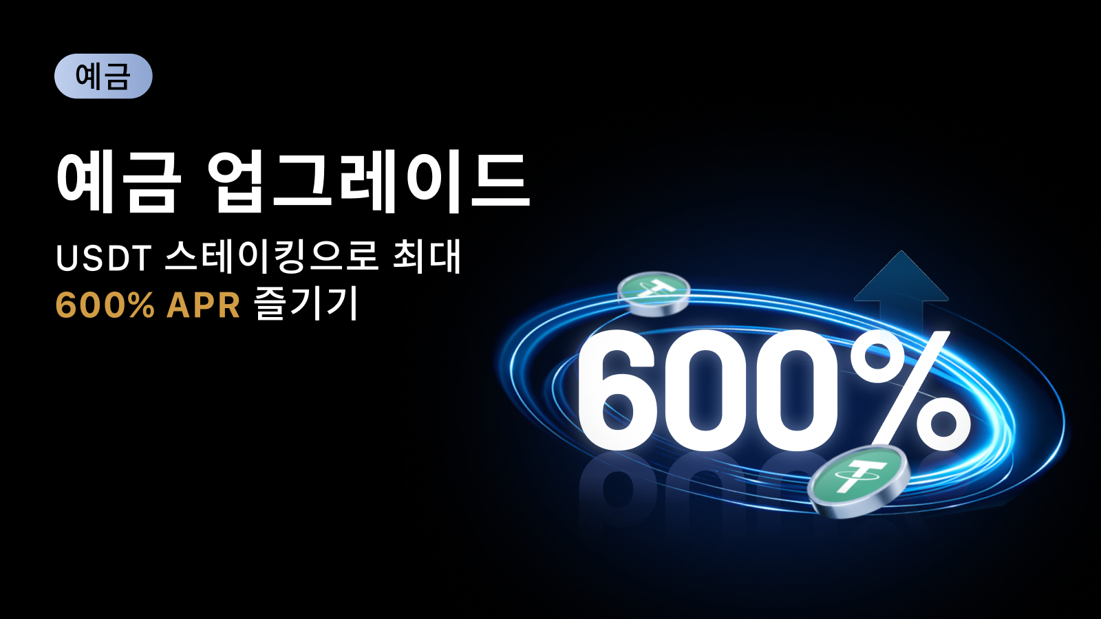 이번 업데이트의 일환으로 기간 한정 혜택이 화려하게 돌아왔습니다. 신규 사용자는 최대 600%의 독점 USDT APR을 누릴 수 있어 초고수익을 더 쉽게 실현할 수 있습니다. 또한 플렉서블 예금 상품은 5~12% APR을 제공하며, 언제든지 입출금이 가능해 유동성을 유지하면서 안정적인 성장을 이룰 수 있습니다.