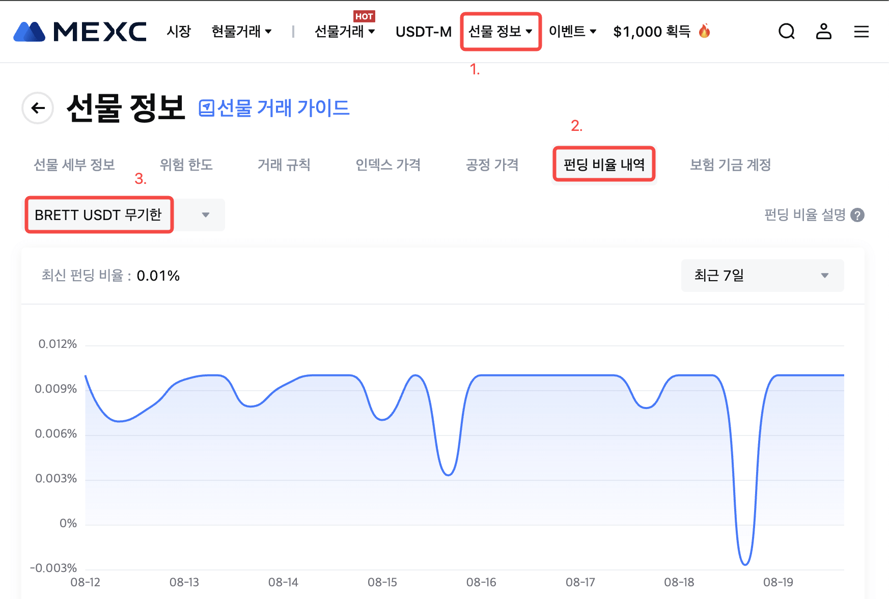 최신 펀딩 비율에 대한 자세한 내용은 선물 정보 - 펀딩 비율 내역을 참조하세요.