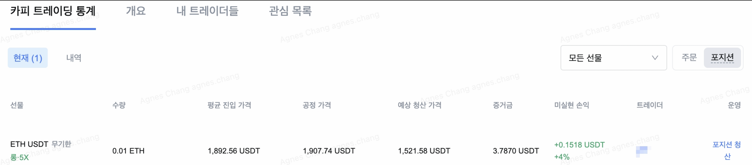 2. 포지션을 기준으로 현재 주문을 볼 때 예상 청산 가격을 확인할 수 있습니다.