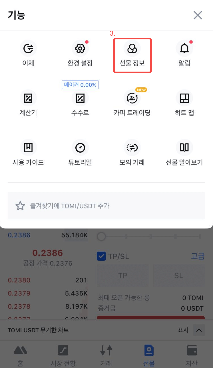앱: 선물 >> ··· >> 선물 정보