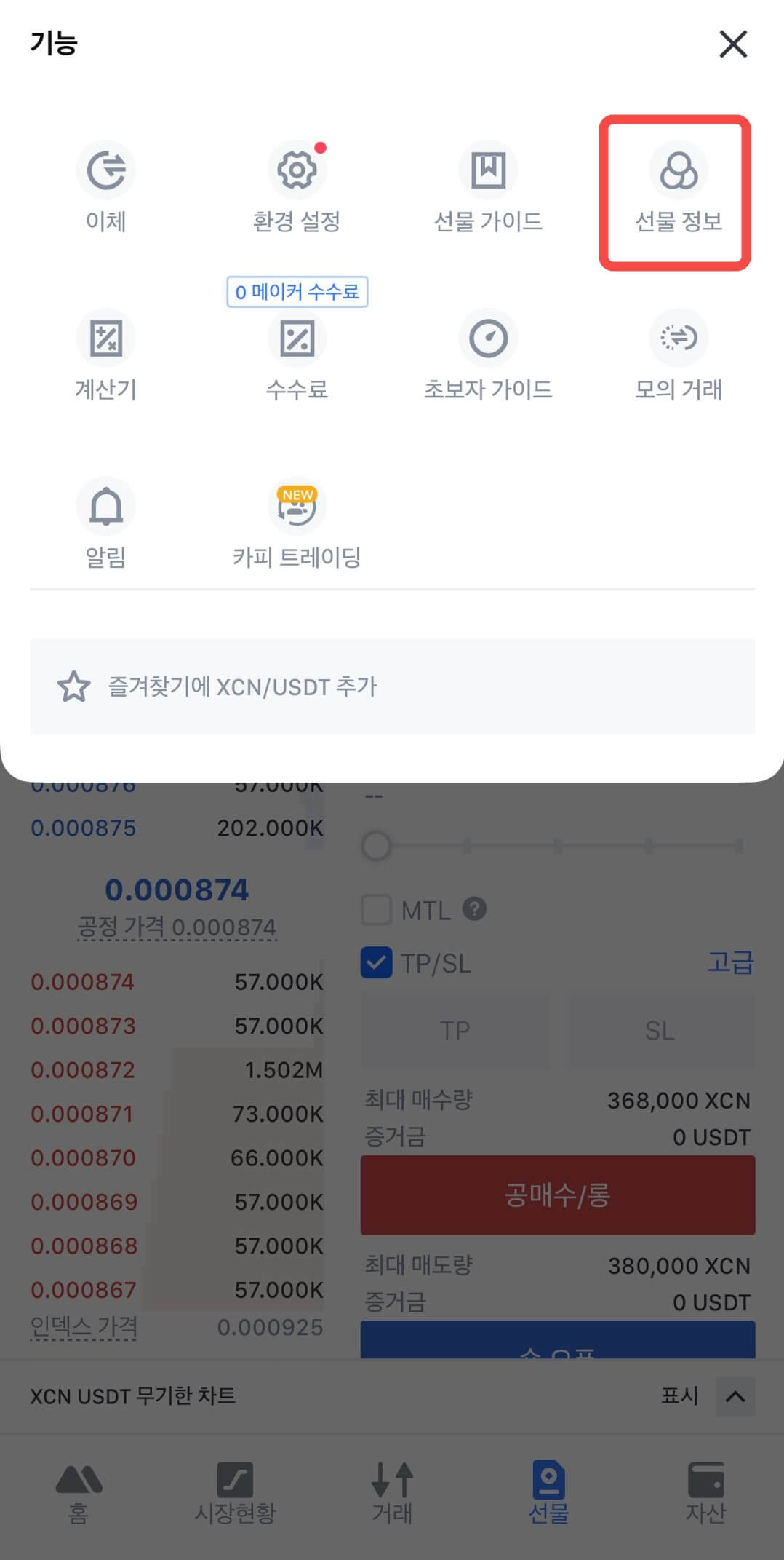 앱: 선물 >> ··· >> 선물 정보