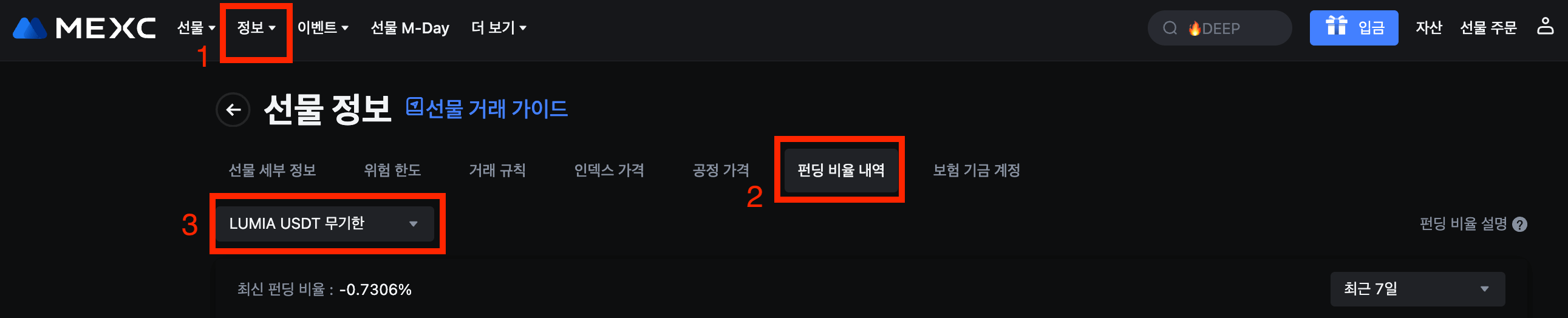 최신 펀딩 비율에 대한 자세한 내용은 선물 정보 - 펀딩 비율 내역을 참조하세요.