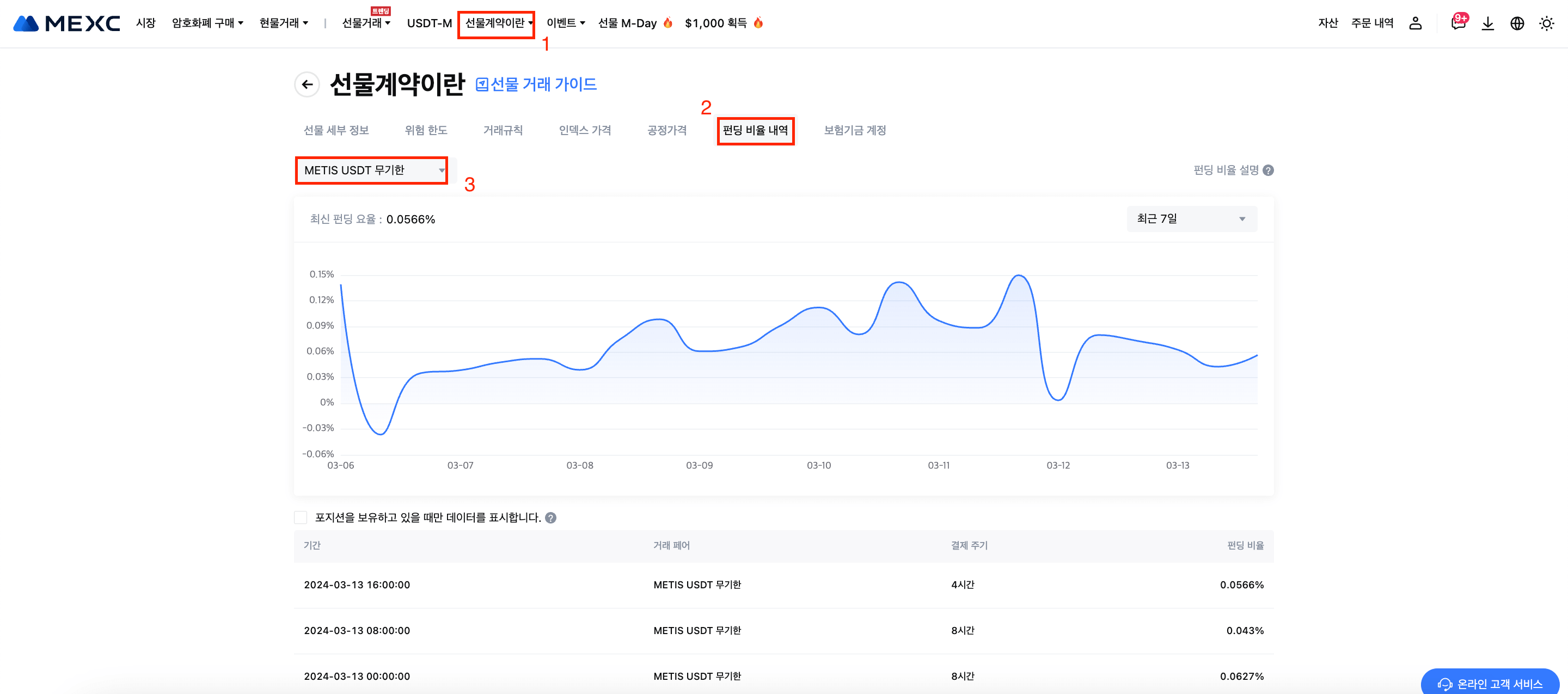 시간 (KST) | METISUSDT 선물 최대 펀딩 비율 |