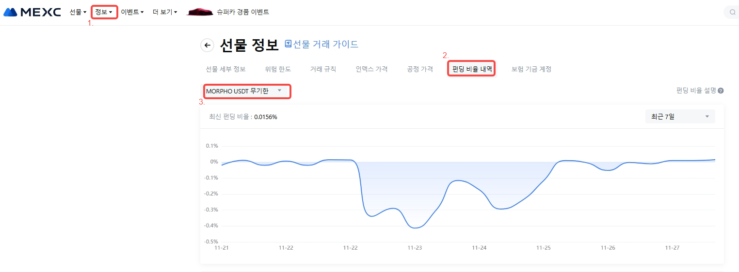 최신 펀딩 비율에 대한 자세한 내용은 선물 정보 - 펀딩 비율 내역을 참조하세요.