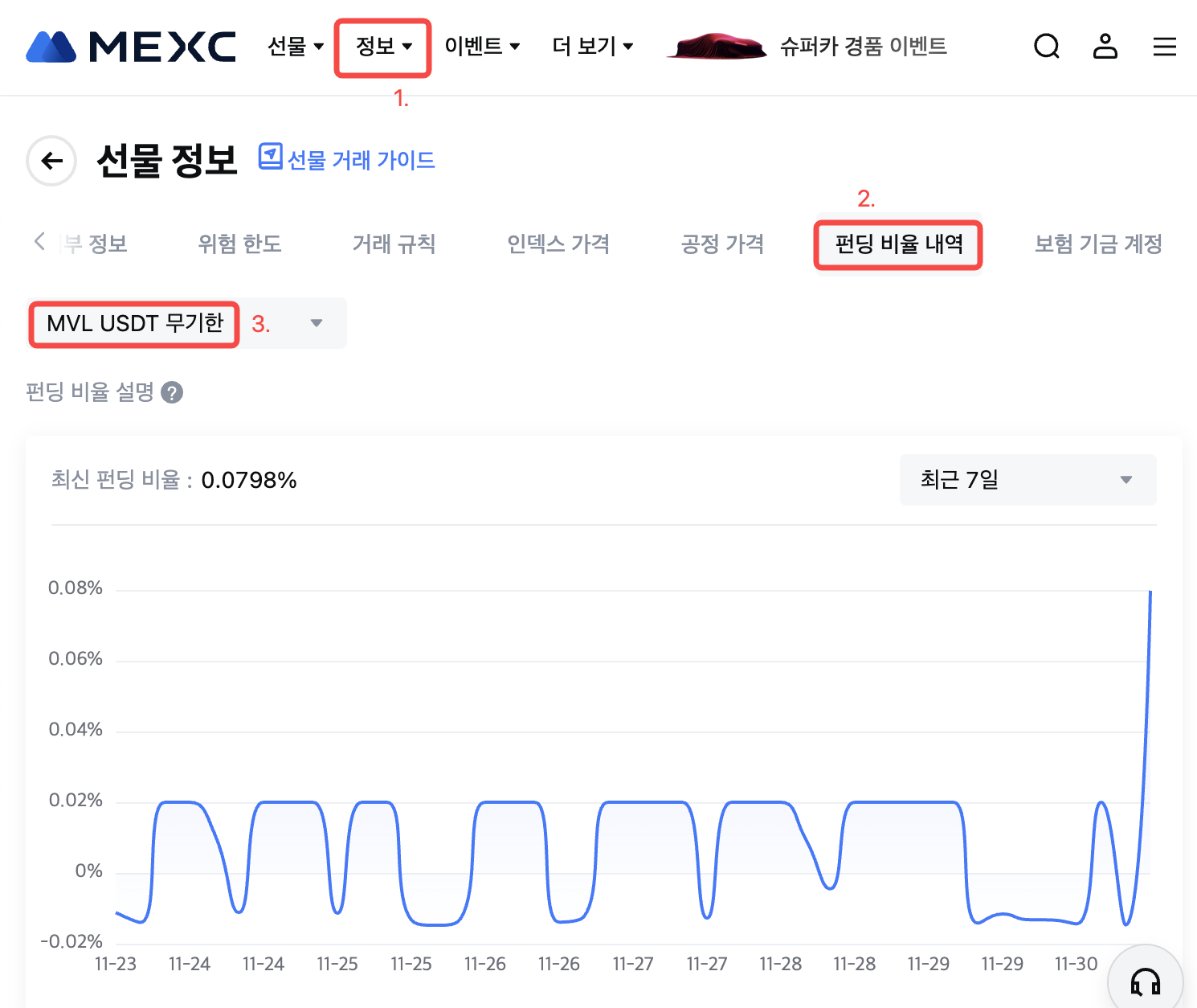 MEXC 선물은 2024년 12월 1일 00:30 (KST)부터 MVL USDT-M 선물의 펀딩 비율 정산 빈도를 8시간마다 한 번씩 조정합니다. 자세한 사항은 다음과 같습니다.