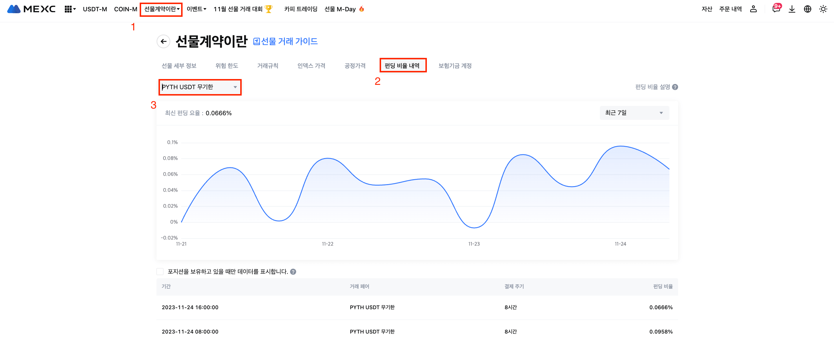 2023년 11월 24일 16:40 (KST)부터 MEXC 선물은 PYTH USDT-M 선물의 펀딩 비율 정산 빈도를 4시간마다 한 번씩 조정합니다. 자세한 사항은 다음과 같습니다.