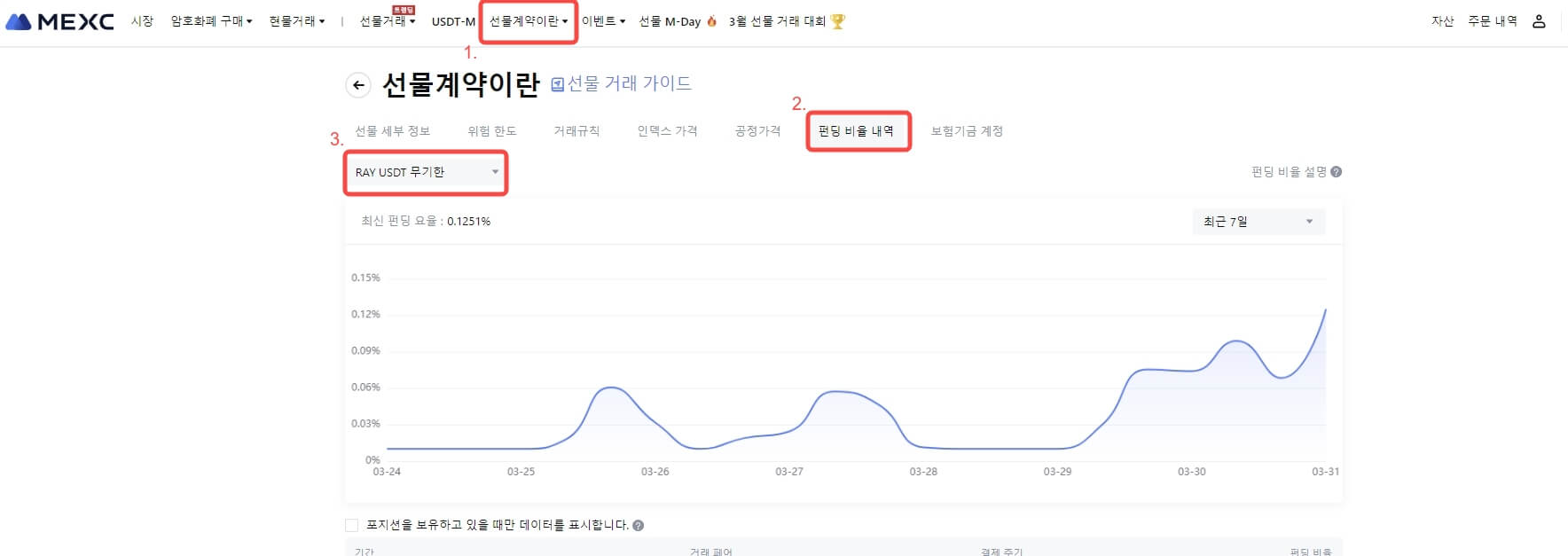 2024년 3월 31일 01:15 (KST)부터 MEXC 선물은 RAY USDT-M 선물의 펀딩 비율 정산 빈도를 4시간마다 한 번씩 조정합니다. 자세한 사항은 다음과 같습니다.