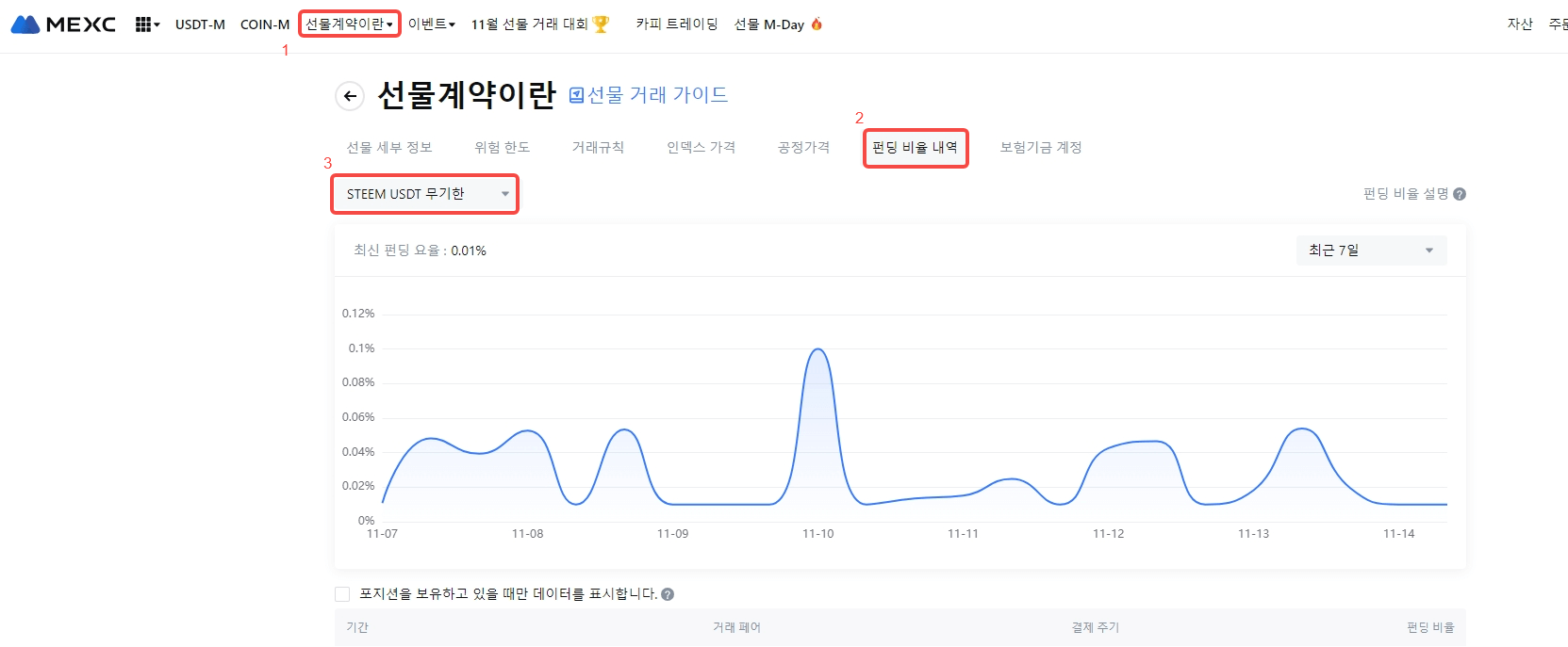 2023년 11월 14일 12:15 (KST)부터 MEXC 선물은 STEEM USDT-M 선물의 펀딩 비율 정산 빈도를 4시간마다 한 번씩 조정합니다. 자세한 사항은 다음과 같습니다.