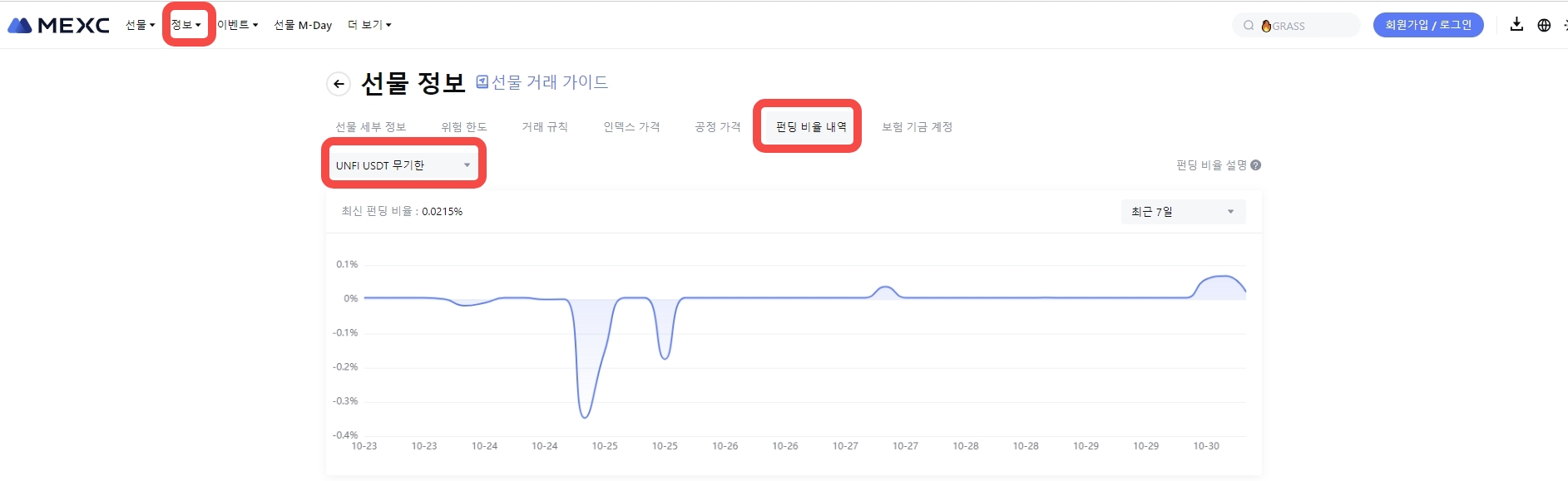 최신 펀딩 비율에 대한 자세한 내용은 선물 정보 - 펀딩 비율 내역을 참조하세요.