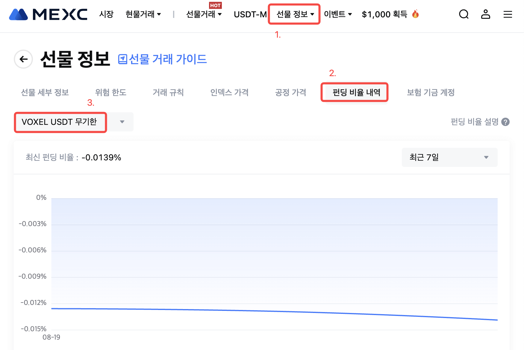 2024년 8월 20일 19:45 (KST)부터 MEXC 선물은 VOXEL USDT-M 선물의 펀딩 비율 정산 빈도를 4시간마다 한 번씩 조정합니다. 자세한 사항은 다음과 같습니다.