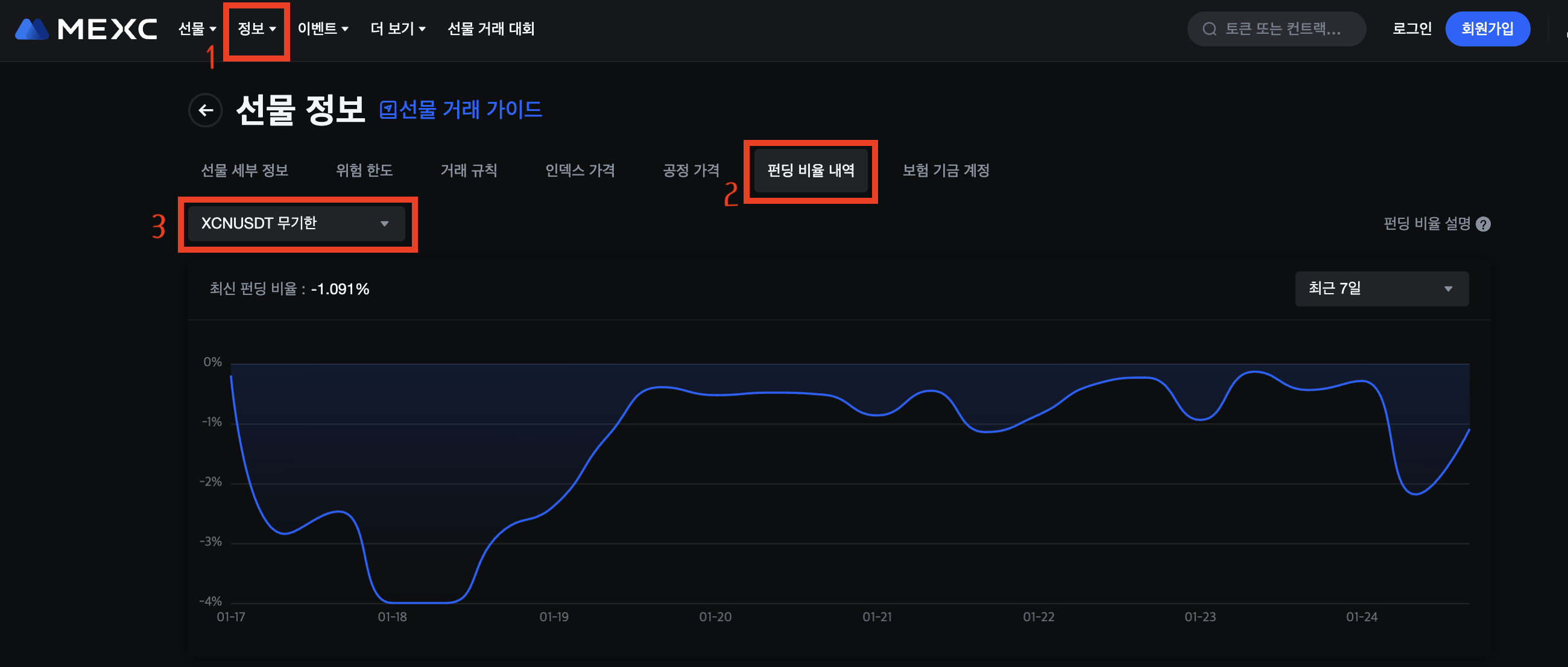 최신 펀딩 비율에 대한 자세한 내용은 선물 정보 - 펀딩 비율 내역을 참조하세요.