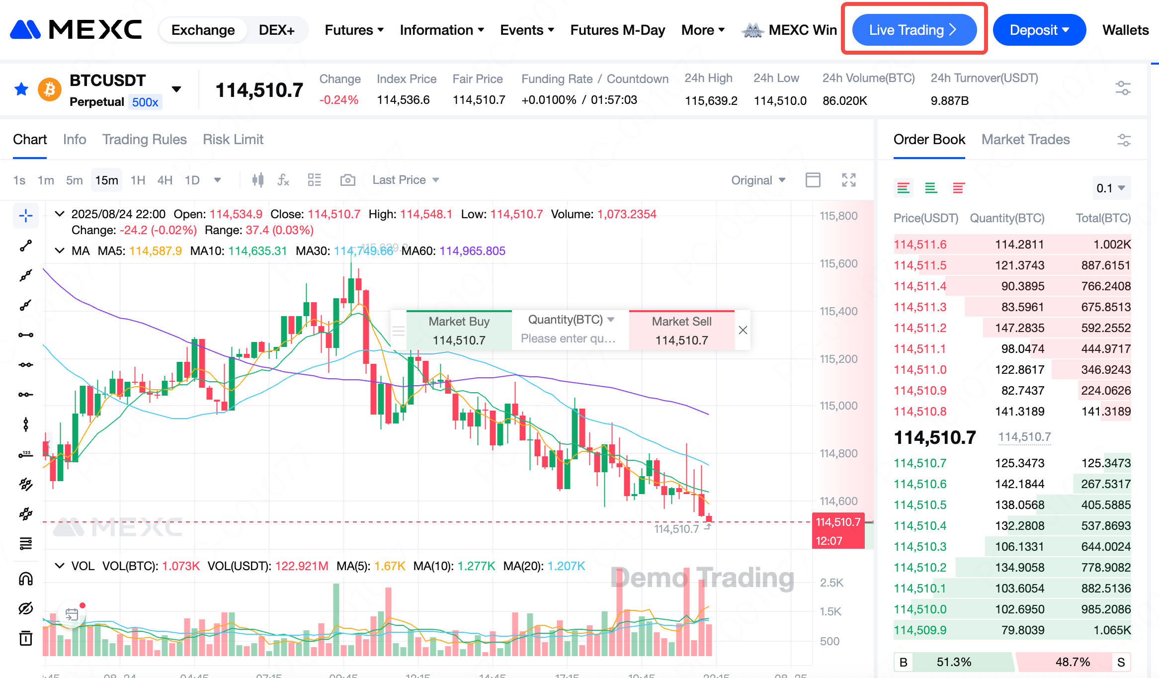 1) 현실적인 시뮬레이션의 가치: MEXC 선물 모의 거래는 실거래 인터페이스, 기능, 시장 데이터를 완전히 복제하며 BTCUSDT와 같은 주요 페어를 포함합니다. 이를 통해 사용자는 실제 시장과 매우 유사한 환경에서 연습할 수 있으며, 기술을 실시간 거래로 원활하게 이전할 수 있습니다.
