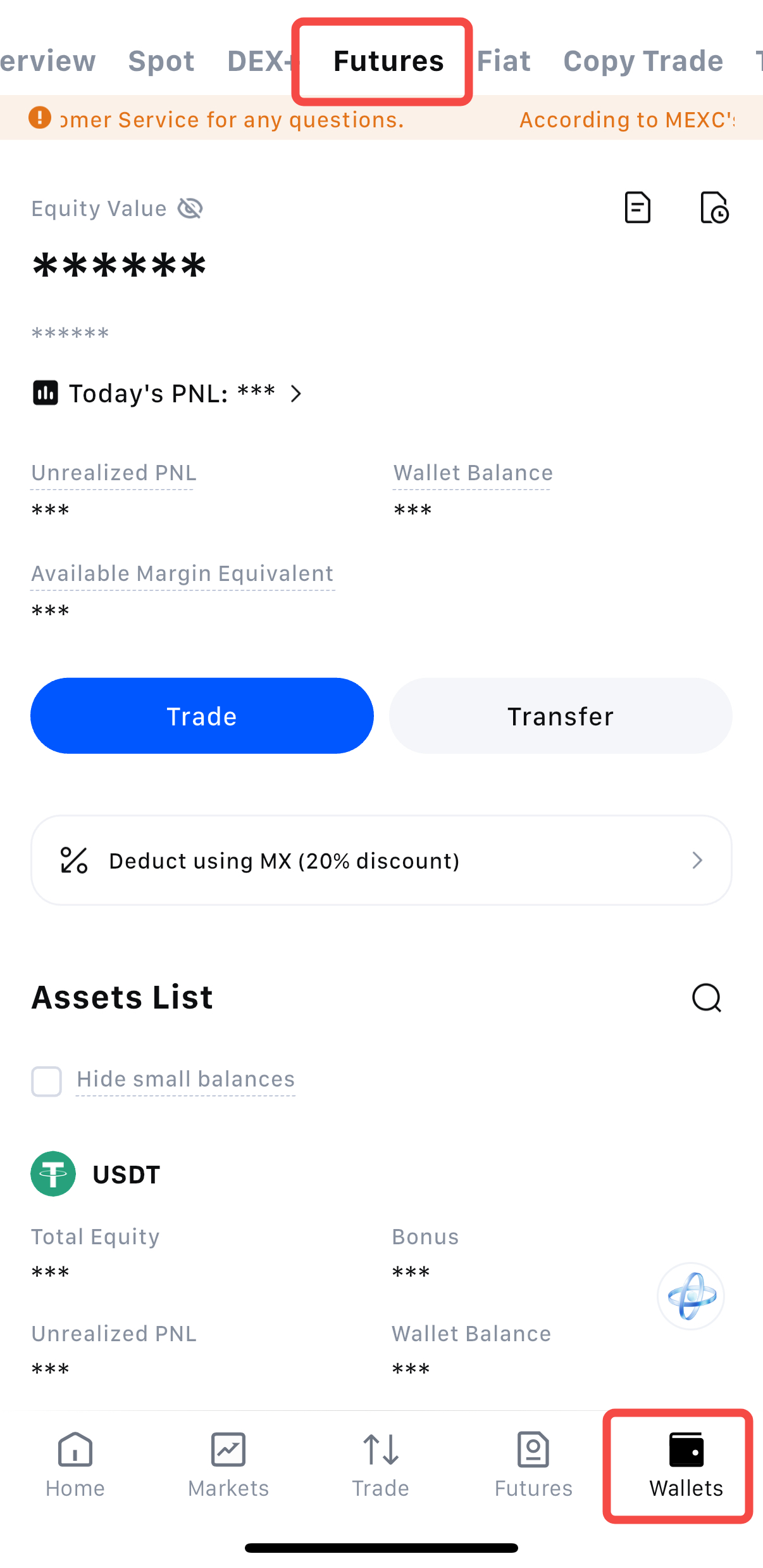 사용자는 자산 → 선물에서 자산을 확인할 수도 있습니다.