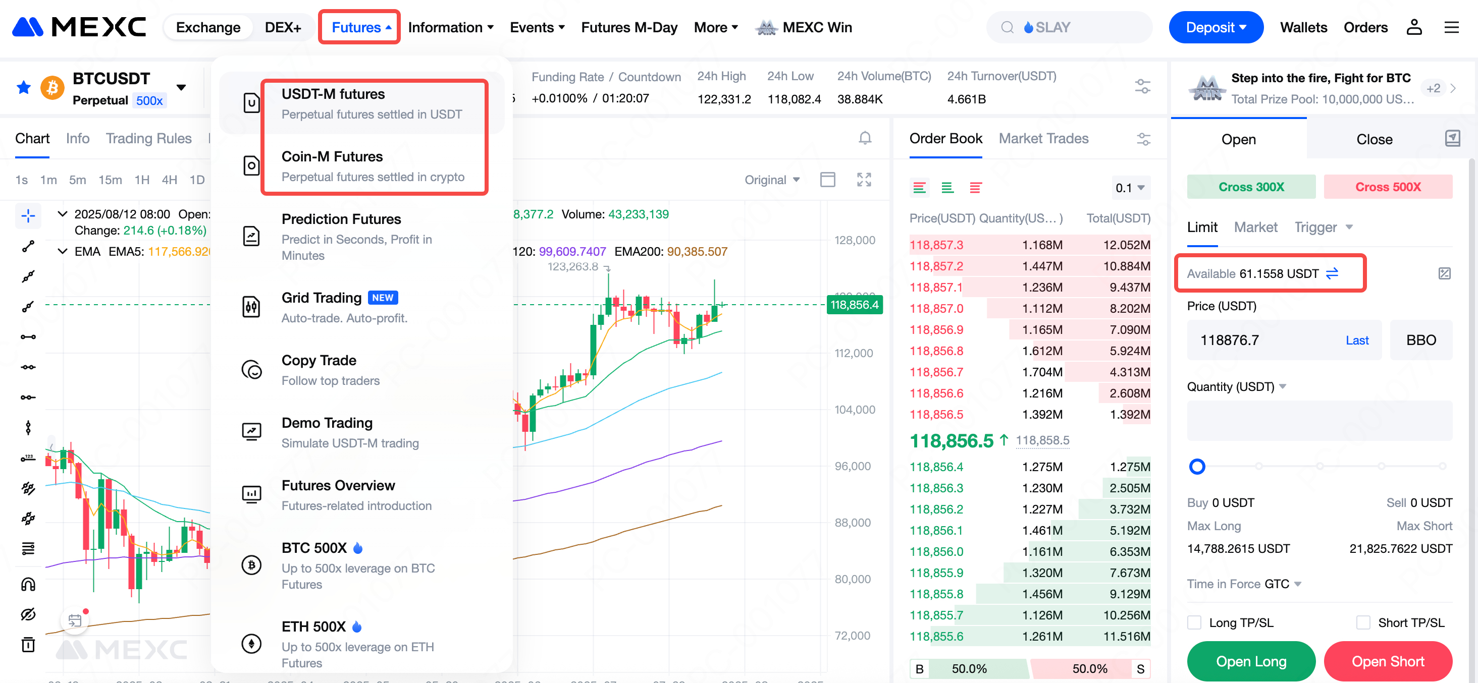 사용자는 선물 거래 인터페이스의 '사용 가능' 메뉴에서 거래 가능한 자산을 확인할 수 있습니다.