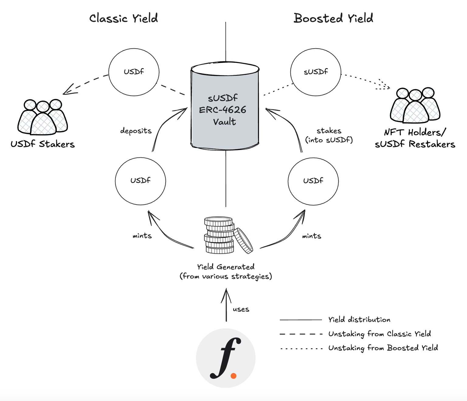 증대 수익(Boosted Yield): 사용자는 sUSDf를 재스테이킹하여 유동성 공급이나 대출 프로토콜 연동 등 더 높은 위험과 보상을 갖는 전략에 참여할 수 있습니다.