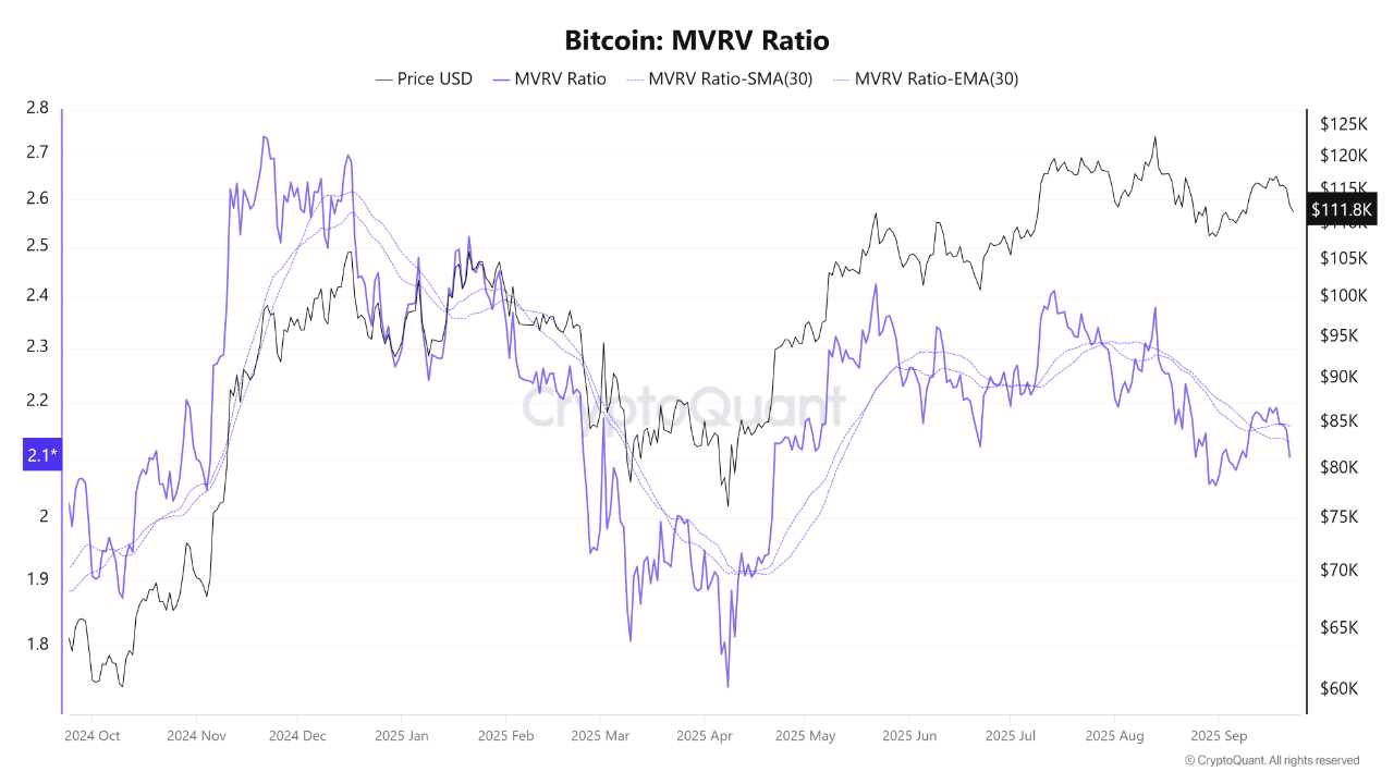 Another signal is seen in the MVRV ratio, which is in the neutral zone of around 2.1. This indicates that investors are neither experiencing significant losses nor making excessive profits.
