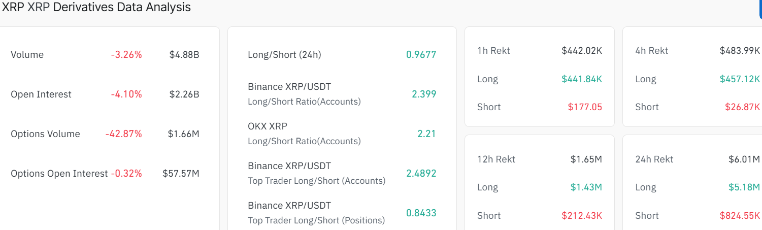 • The open interest has dropped by 4%, showing a slip in retail demand.
