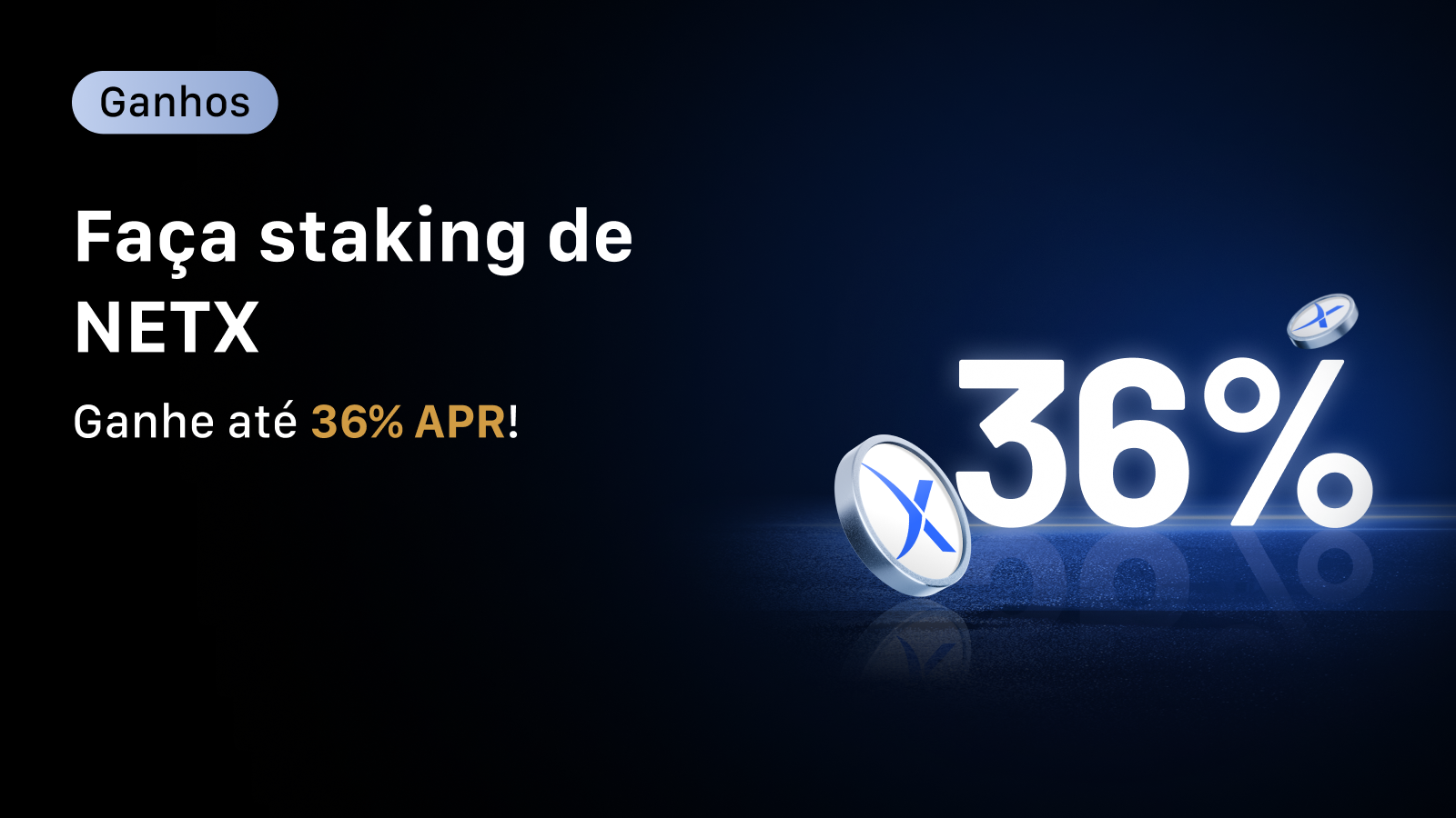É hora de fazer sua cripto trabalhar mais por você! A MEXC apresenta com orgulho o Evento Stake-to-Earn NETX - sua oportunidade por tempo limitado de ganhar até 36% APR apenas fazendo staking de NETX.