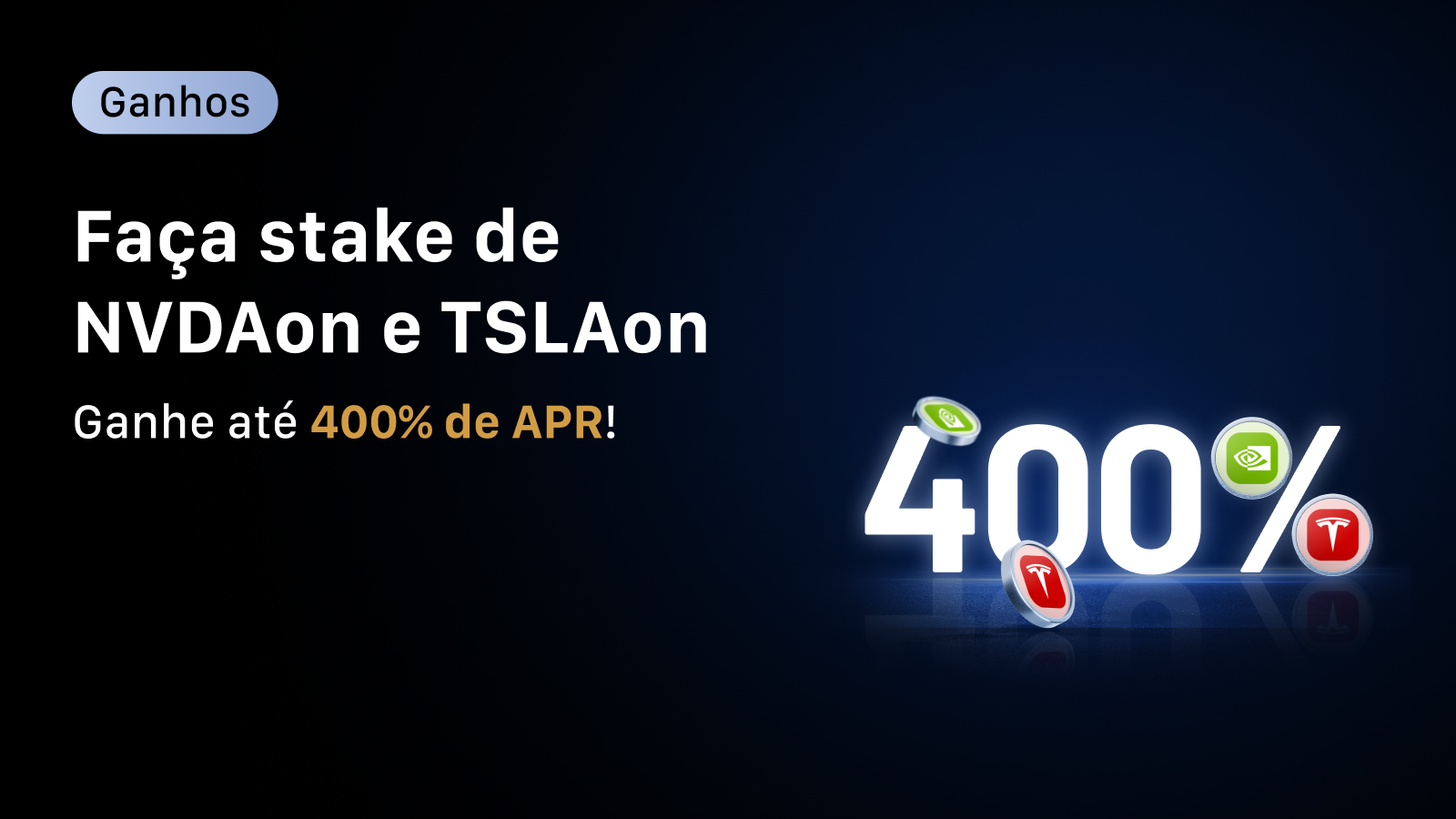 A Gala de Staking NVDAon e TSLAon já está ao vivo – exclusiva para novos usuários e disponível por tempo limitado. Faça staking de seus NVDAon e TSLAon hoje mesmo para ganhar impressionantes 400% de APR. Não perca essa oportunidade rara!