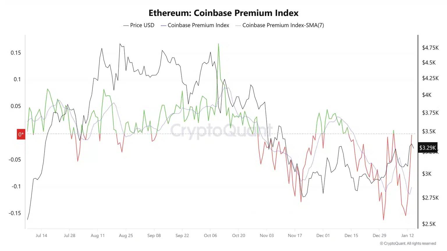 Índice ETH Coinbase Premium. Fonte: CryptoQuant