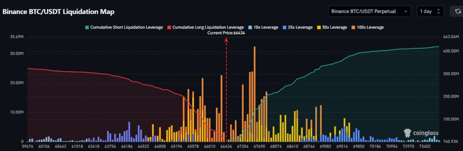 Ao mesmo tempo, CryptoReviewing chamou atenção para o acúmulo de liquidez abaixo do preço atual. Segundo ele, a faixa entre US$ 64.000 e US$ 66.000 concentra forte interesse, mas regiões mais altas exibem riscos ainda maiores de liquidações.