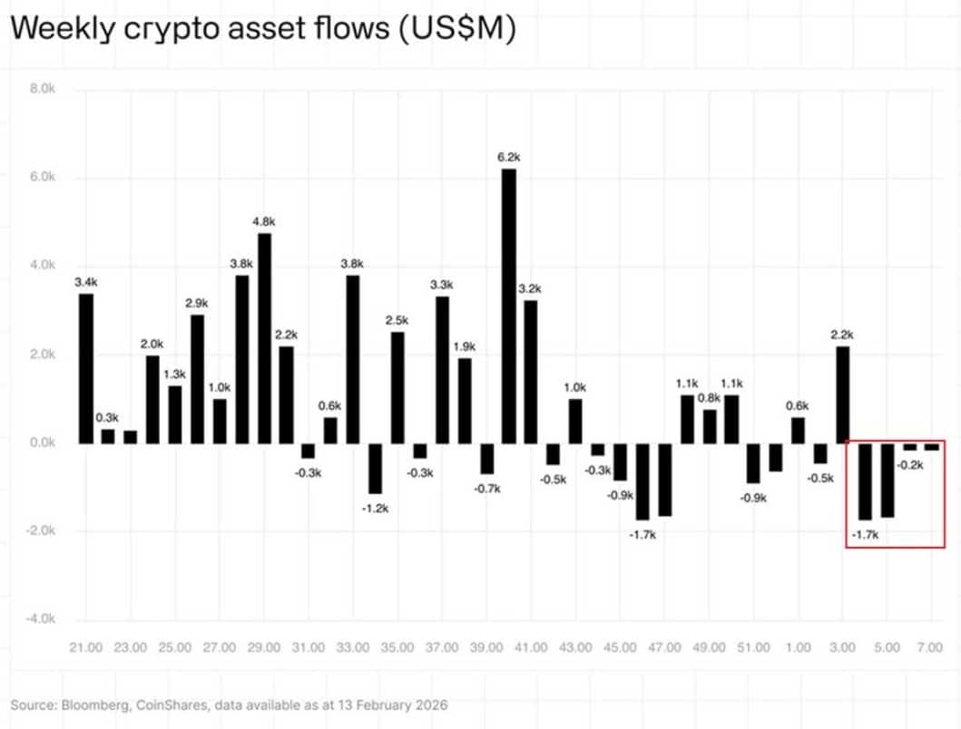 Outro ponto que elevou o alerta foi a fuga contínua de investidores institucionais. A Kobeissi Letter destacou, em uma publicação no X, que fundos de criptomoedas registraram US$ 173 milhões em saídas na última semana.