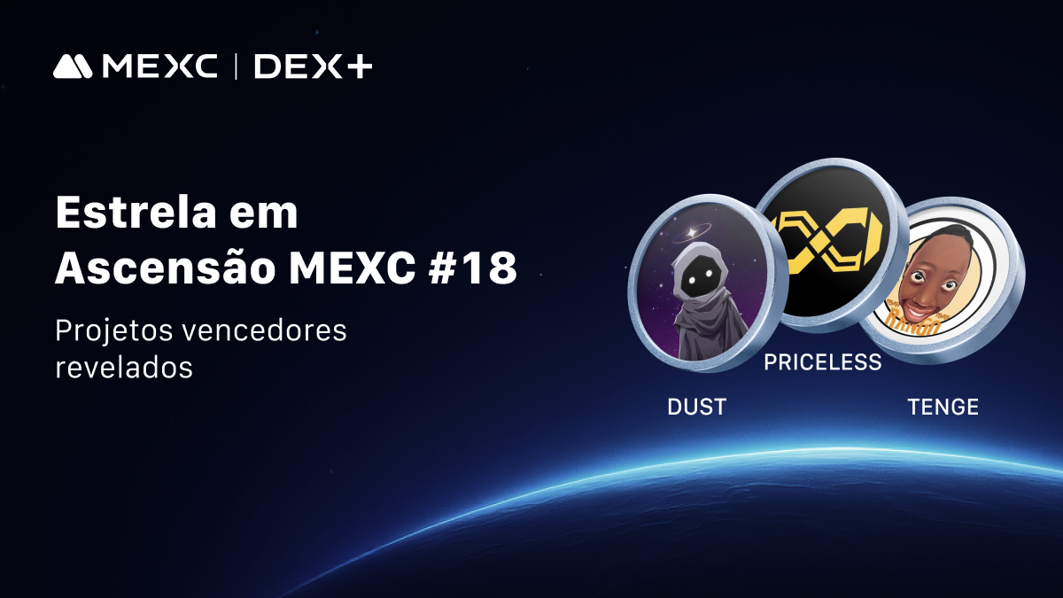 Parabéns a DUST, PRICELESS e TENGE por vencerem na Estrela em Ascensão da MEXC #18 e garantirem suas vagas de listagem!