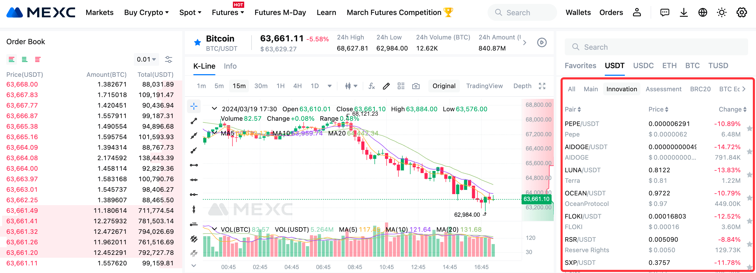 Чтобы помочь пользователям лучше идентифицировать различные атрибуты проектов и уровни риска, MEXC разделяет спотовый рынок на несколько зон: