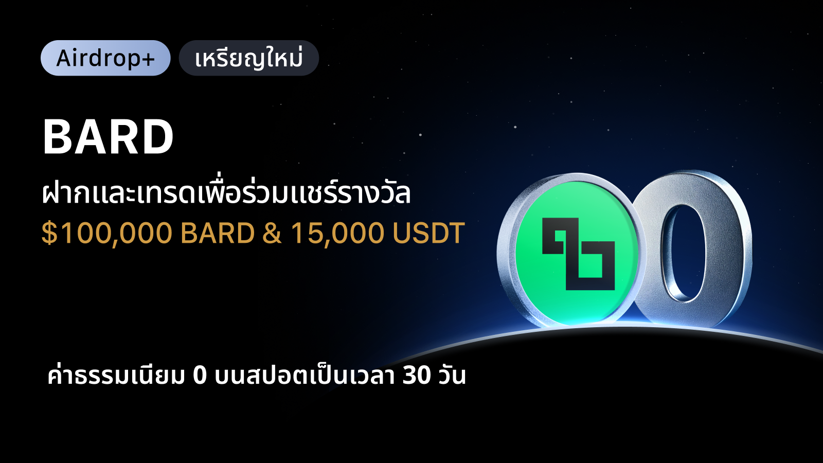 เข้าร่วมกับเราในการเฉลิมฉลองการจดทะเบียนของ Lombard (BARD) บน MEXC ด้วยกิจกรรมพิเศษที่เปิดให้ทั้งผู้ใช้ใหม่และผู้ใช้ปัจจุบันเข้าร่วม อย่าพลาดโอกาสในการแบ่งปันรางวัลสุดพิเศษ และสัมผัสค่าธรรมเนียมที่ต่ำที่สุดในตลาดเมื่อเทรดกับ MEXC