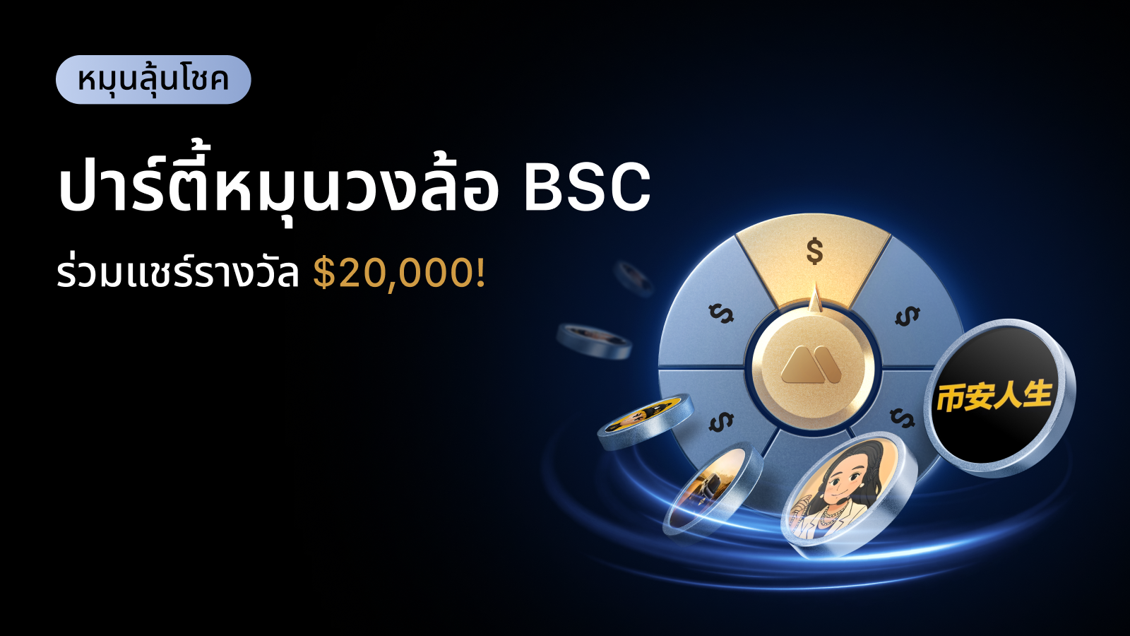 สัมผัสความคึกคักของเครือข่าย BSC ไปกับ MEXC! หมุนวงล้อ ไล่ล่าความตื่นเต้น และคว้าส่วนแบ่งรางวัลจากโทเคนสุดฮอตรวมมูลค่า $20,000!